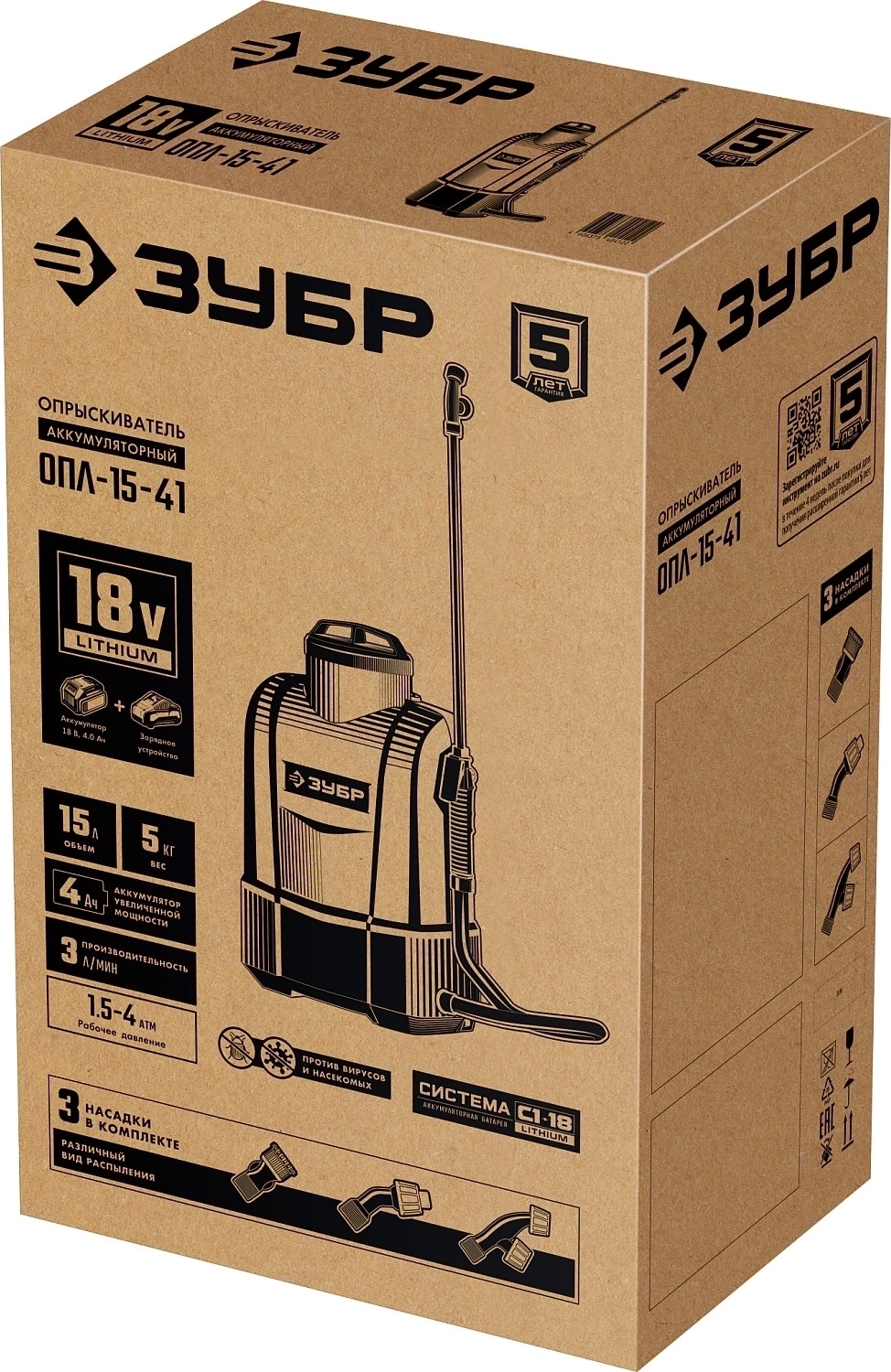ЗУБР ОПЛ-15-41 Аккумуляторный опрыскиватель 15 л, 1 АКБ 4 А·ч арт. 111711
