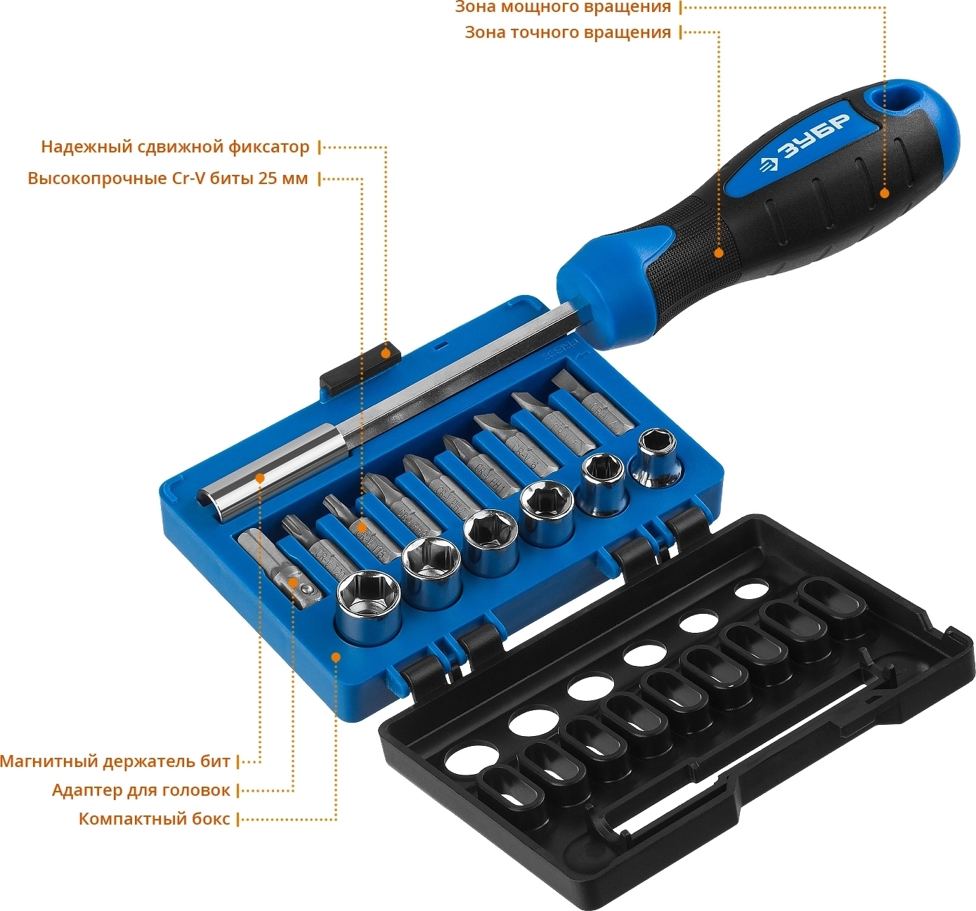 Отвертка-битодержатель ЗУБР с насадками