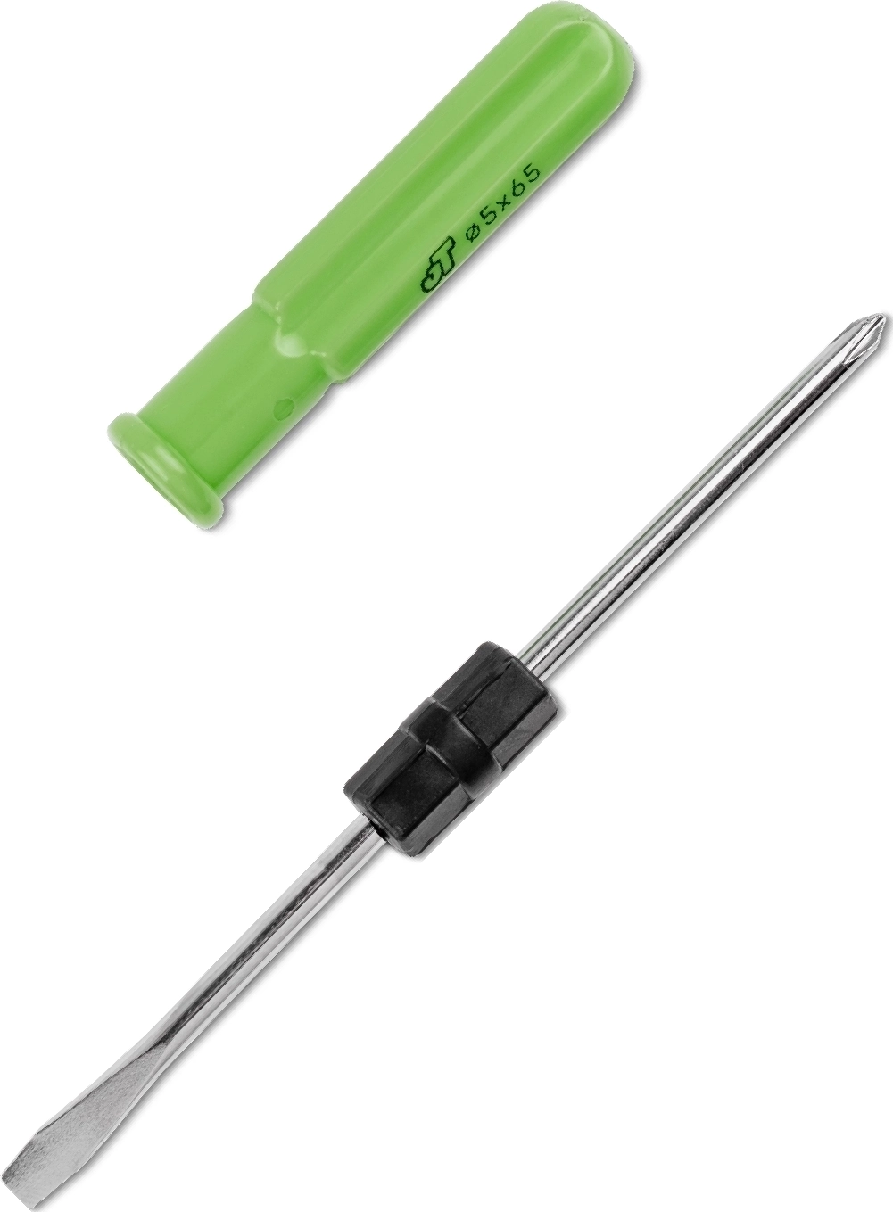 Отвертка предназначена для монтажа и демонтажа резьбовых соединений. Двухсторонний стержень отвертки имеет профили шлиц и крест.
