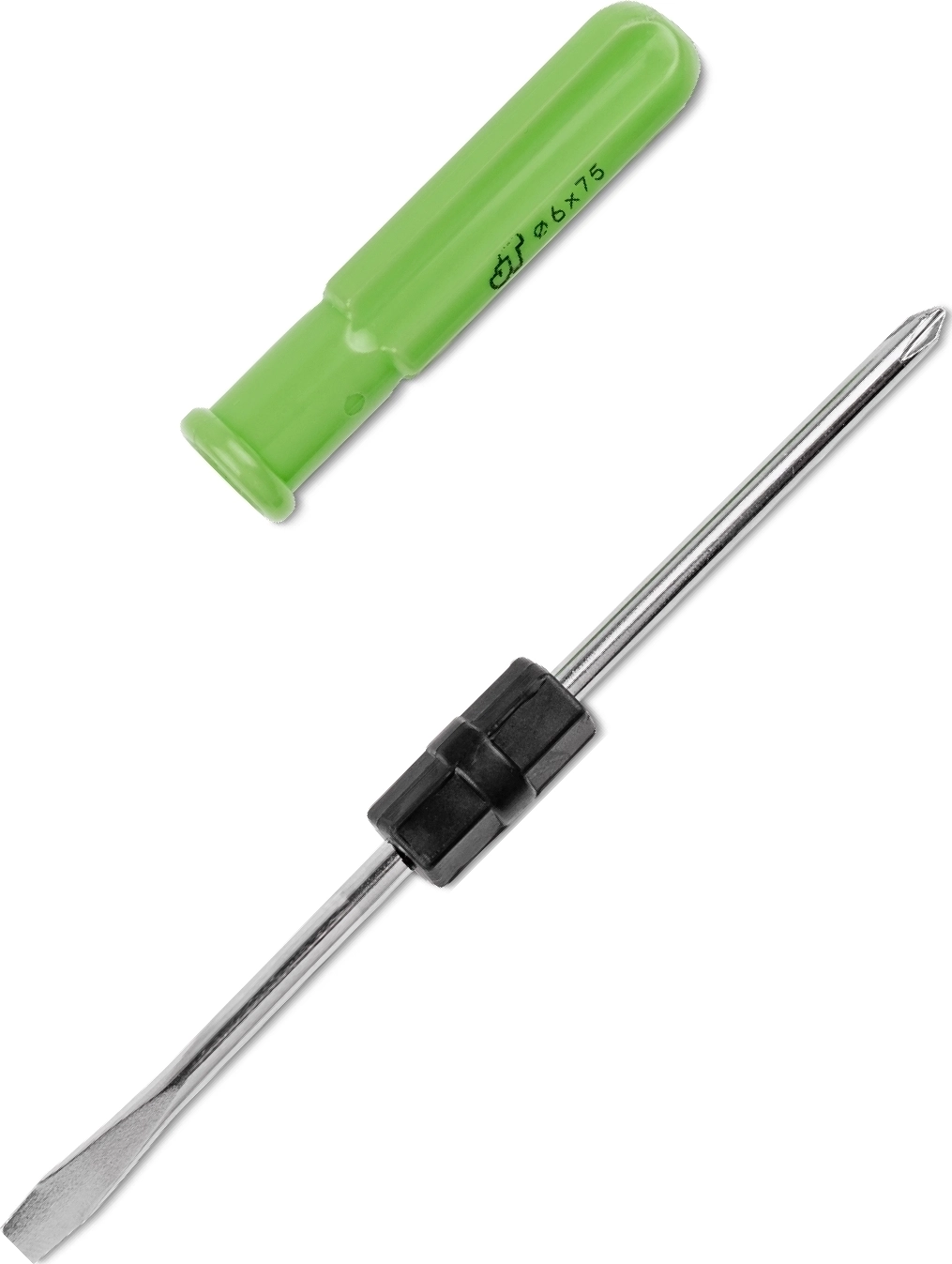 Отвертка предназначена для монтажа и демонтажа резьбовых соединений. Двухсторонний стержень отвертки имеет профили шлиц и крест.
