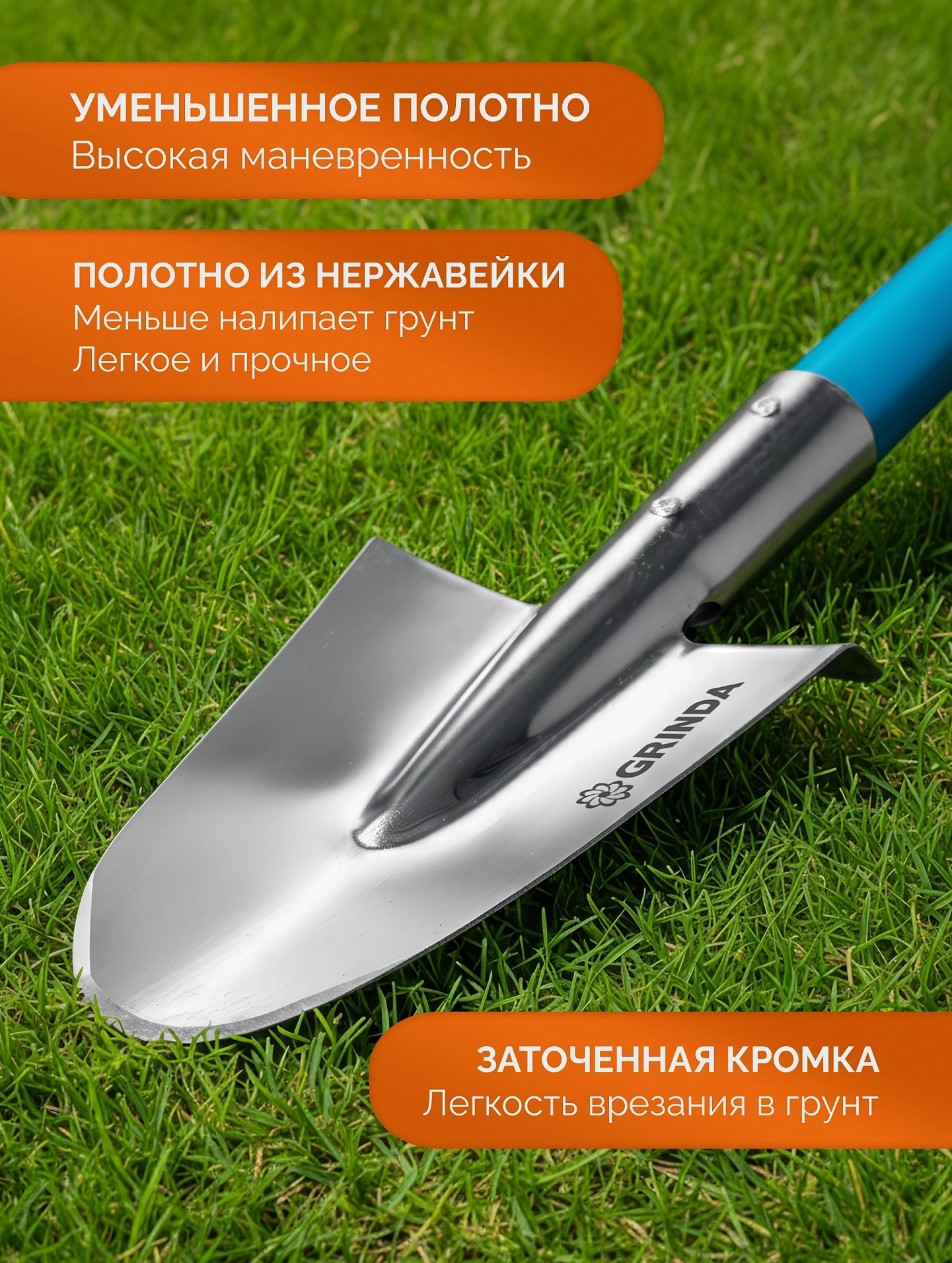 Идеальный инструмент для садовода-огородника, который ценит удобство, эффективность и долговечность. Вес в 2-3 раза легче стандартной стальной лопаты благодаря легкому алюминиевому черенку и уменьшенному полотну из нержавеющей стали Высокая маневренность и удобство в ограниченном пространстве позволяет работать между кустами, на клумбах, в парниках не повреждая соседние растения. Заточенная кромка с минимальным усилием врезается в землю, не рвет и не мнет корни растений, а аккуратно их перерезает. Это особенно важно при работе с дерном и пересадке растений. Гладкая поверхность полотна из нержавеющей стали снижает вероятность налипания грунта. Специальная эргономичная пластиковая рукоятка идеально лежит в руке, не скользит и поглощает вибрации. Меньший объем грунта: За один раз вы поднимаете меньше земли, что значительно снижает нагрузку на спину и суставы, особенно при длительной работе. Идеально подходит для женщин и людей старшего возраста. Основное назначение: Аккуратная высадка