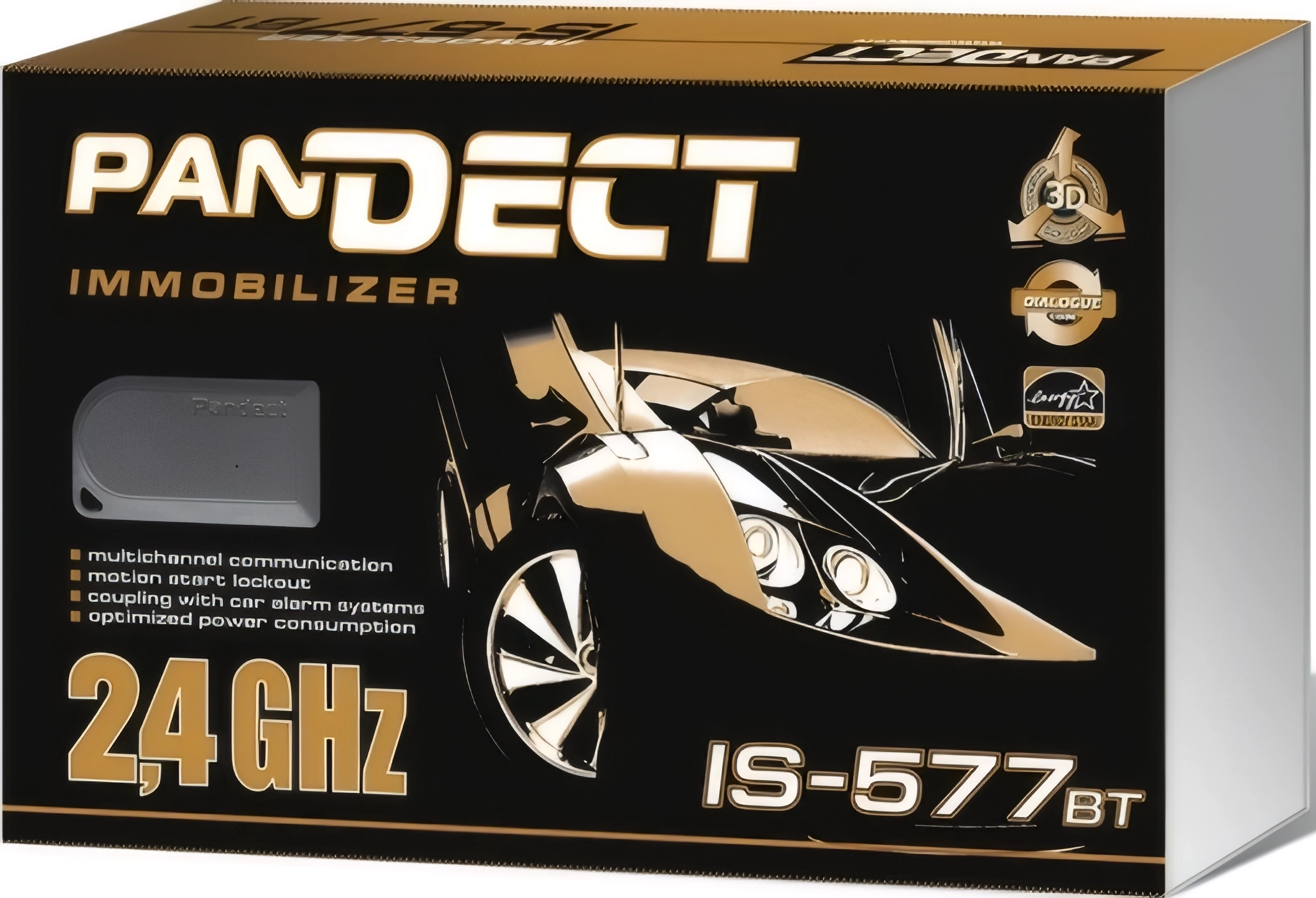 Данная модель основана на модели Pandect IS-577, отличается она от него наличием Bluetooth-интерфейса (информация между метками и основным блоком осуществляется по защищенному каналу Bluetooth). Сами метки защищены от влаги, отличаются длительным сроком работы от одного элемента питания (до 3 лет). Мобильное приложение Pandora BT позволяет удобно контролировать состояние иммобилайзера, управлять режимами его работы (включать режим технического обслуживания, настраивать дистанцию распознавания меток и т.д.), а также проверять, сколько меток и блокировок прописано в систему. Отсутствие у владельца возможности пользоваться мобильным приложением никак не повлияет на доступный функционал — его использование не является обязательным для полноценной и корректной работы системы.