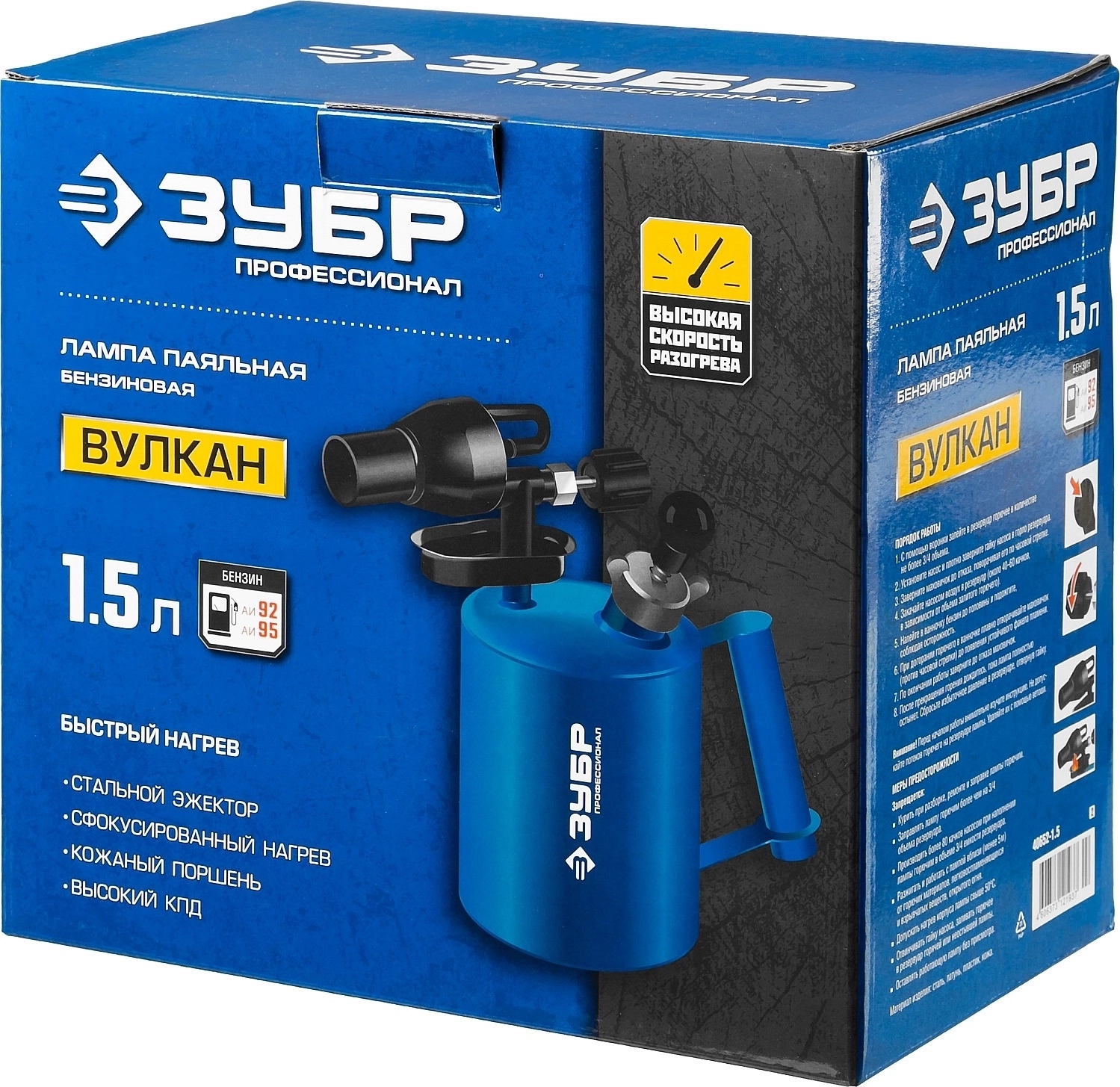Паяльная лампа ЗУБР ВУЛКАН ВК-15 1.5 л стальной эжектор