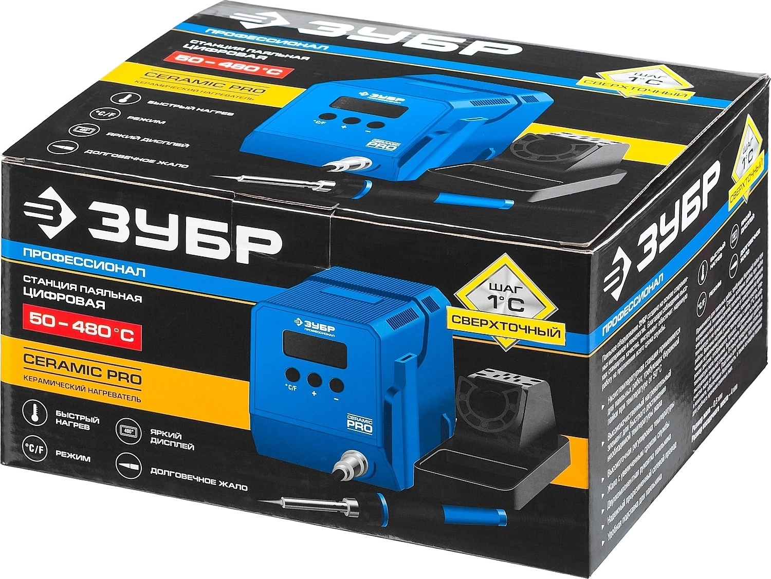 Паяльная станция цифровая ЗУБР ПСН-60 60 Вт 50 - 480 гр. C керамический нагреватель низкотемпературная
