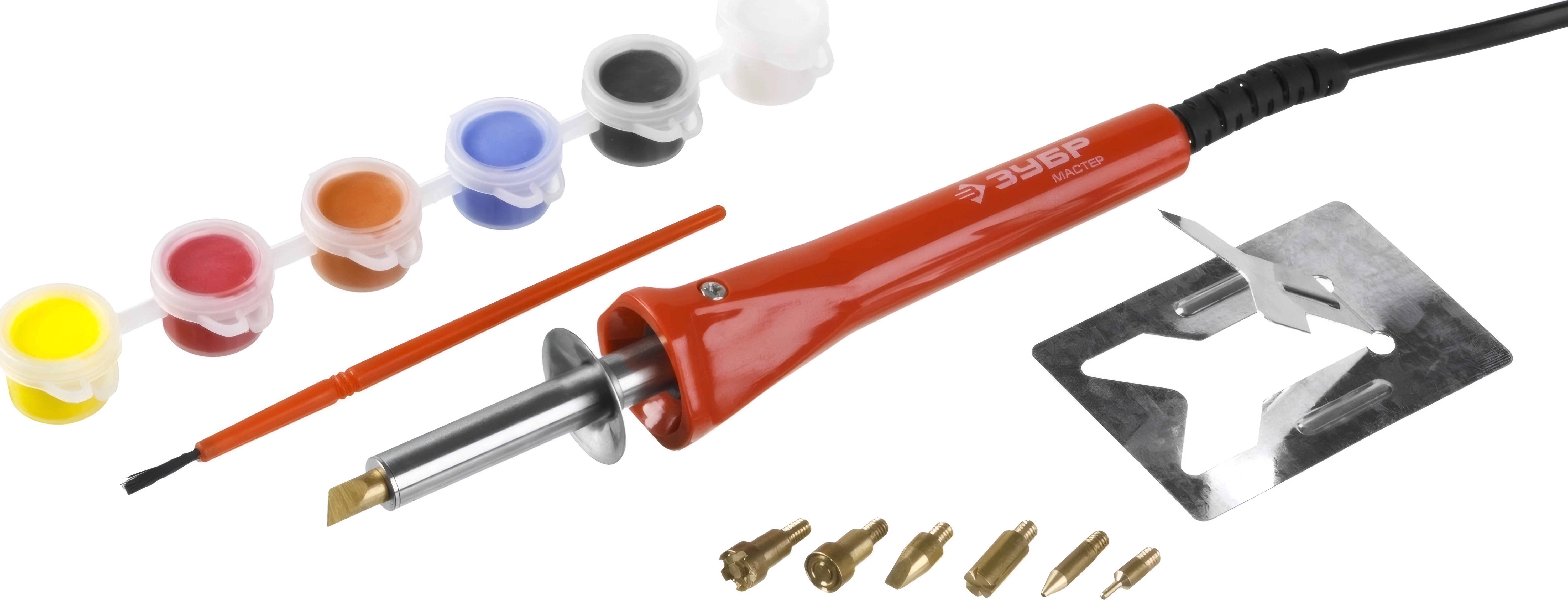 ЗУБР 55425 Прибор для выжигания с набором насадок и красками 30 Вт арт. 104343