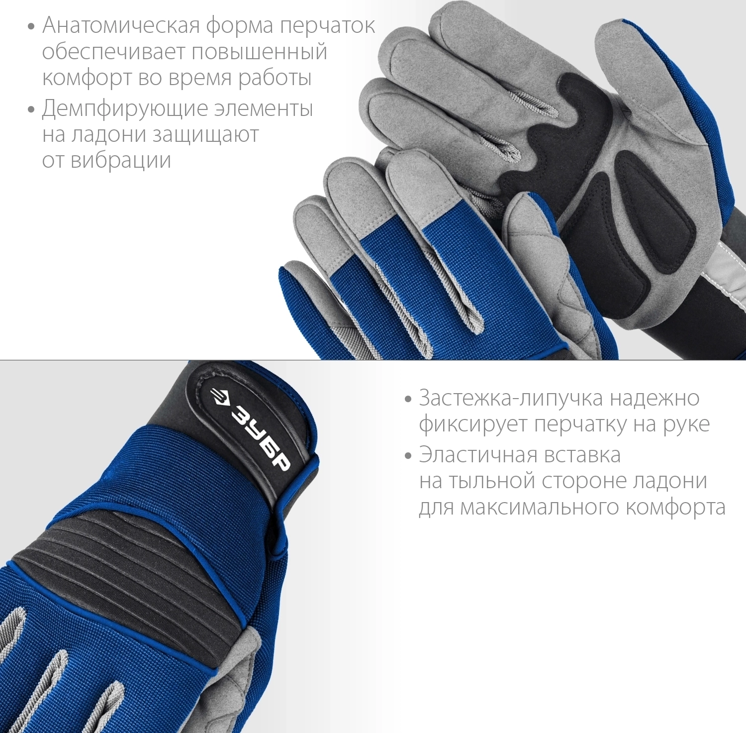 Перчатки комбинированные ЗУБР МОНТАЖНИК XL 10 профессиональные комбинированные перчатки для тяжелых мех. работ антивибрационные