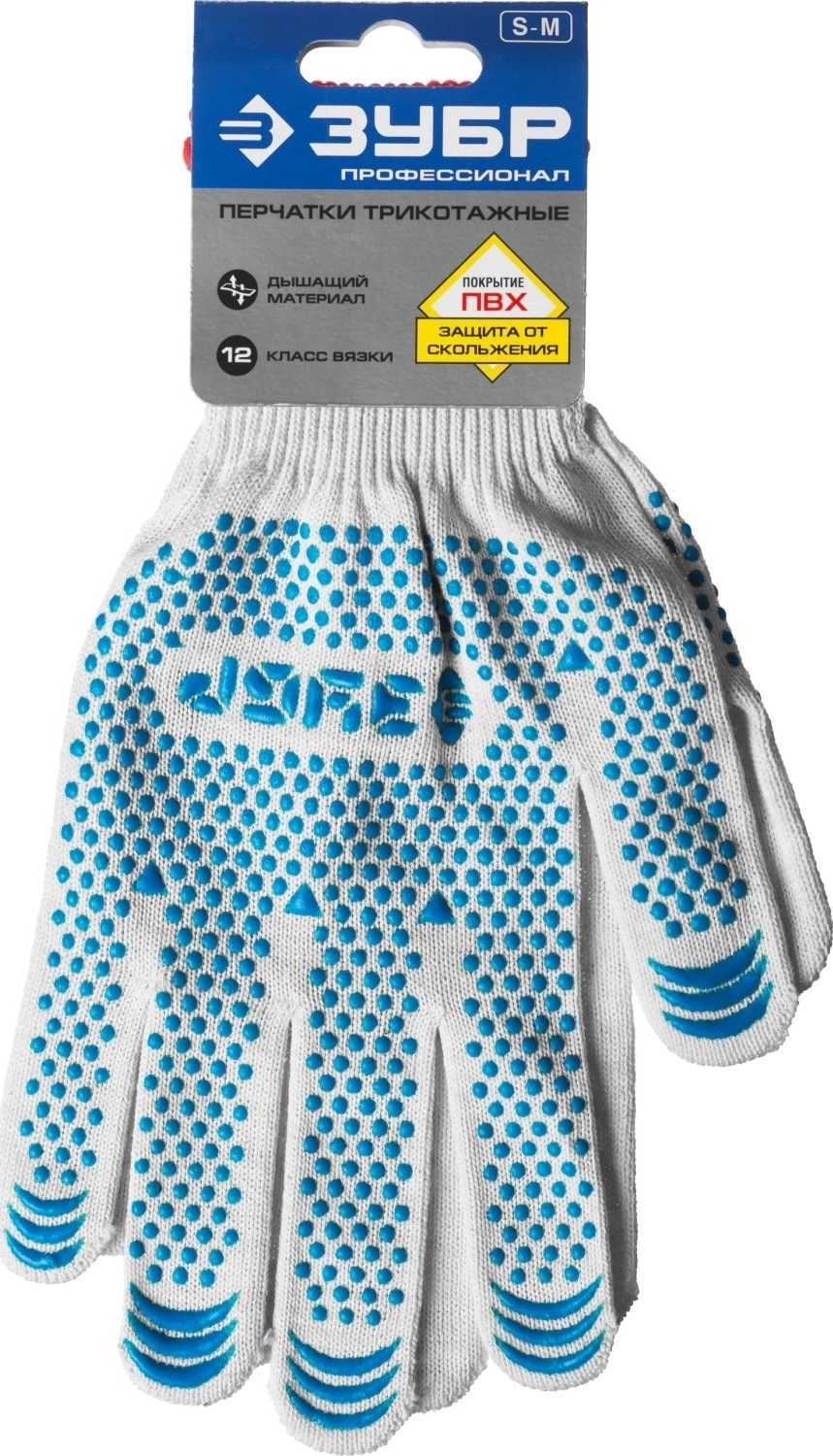 Перчатки х/б с покрытием из ПВХ-геля ЗУБР ТОЧКА+ S-M противоскользящие точки увеличенного размера 13 класс