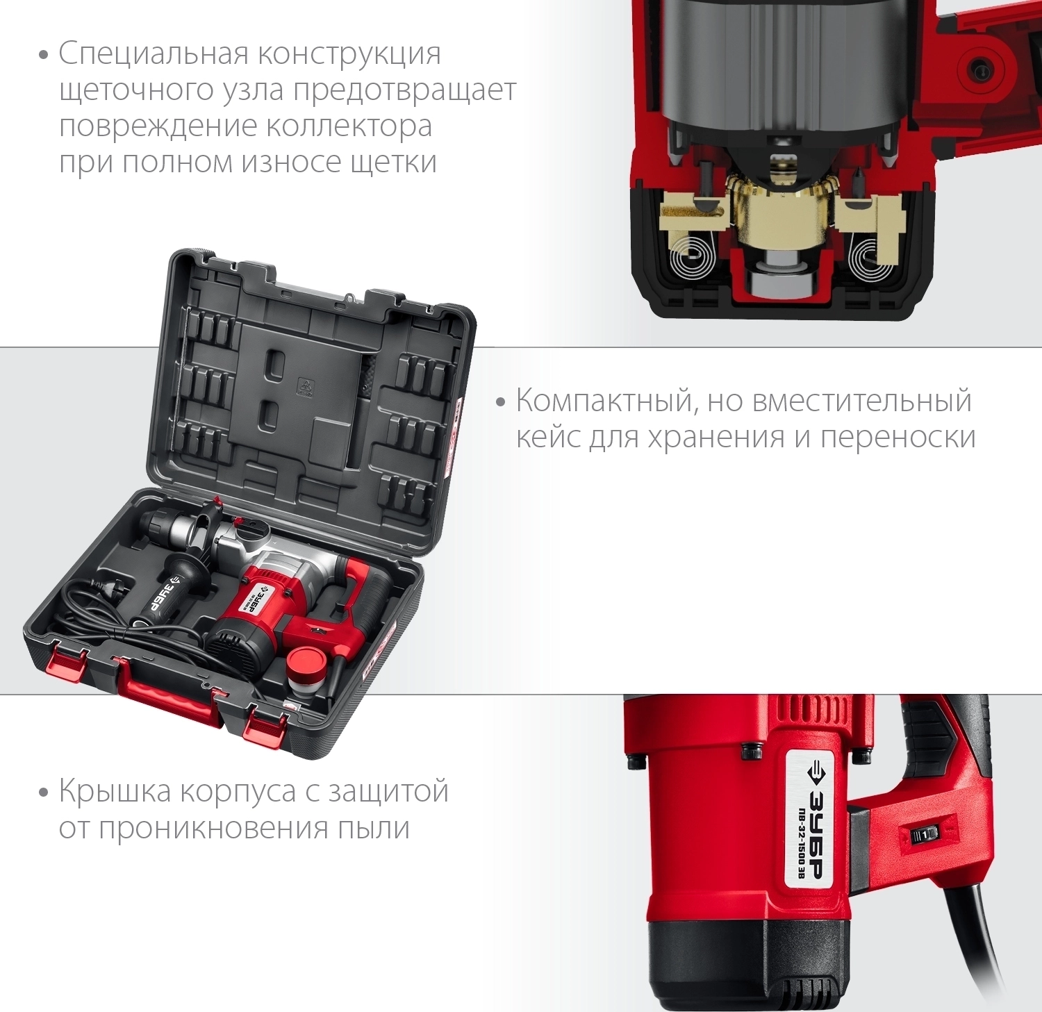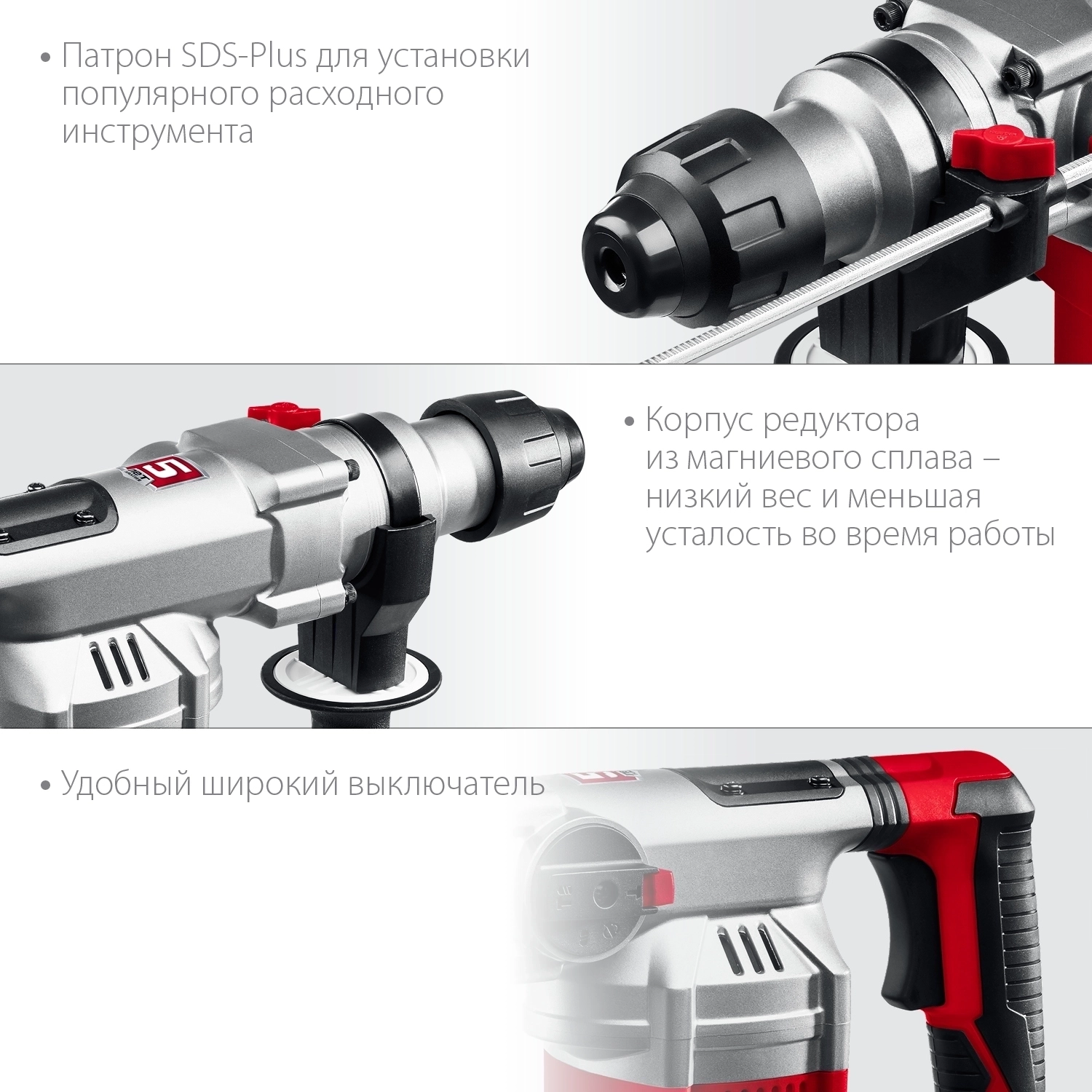 - Патрон SDS Plus для установки широкого спектра расходного инструмента и быстрой замены в процессе работы