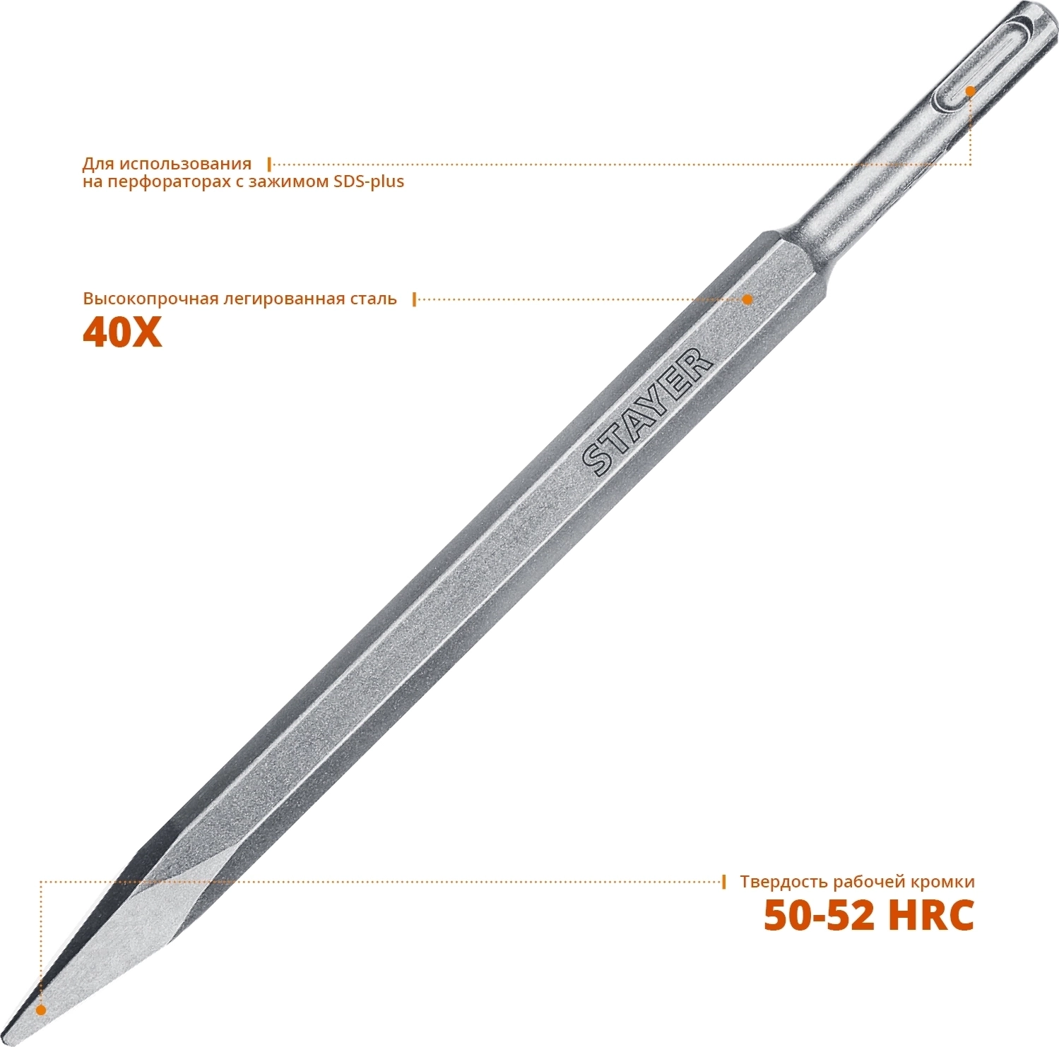 Зубила STAYER серии PROFESSIONAL - это высококачественный ударный инструмент, незаменимый на строительной площадке. Предназначено для общих долбежных и демонтажных работ с материалами высокой твердости, такими как кирпичная кладка, бетон или камень.