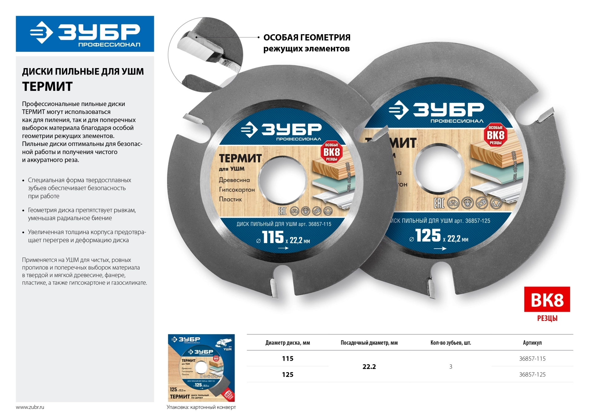 Пильный диск по дереву ЗУБР Термит 115 х 22.2 мм 3 резца для УШМ