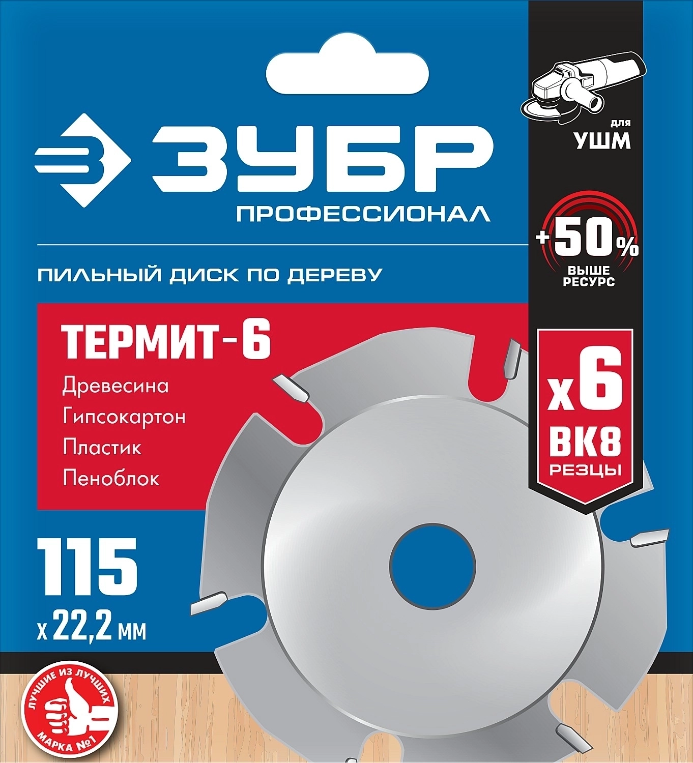 Пильный диск по дереву ЗУБР Термит-6 115 х 22.2 мм 6 резцов для УШМ усиленный
