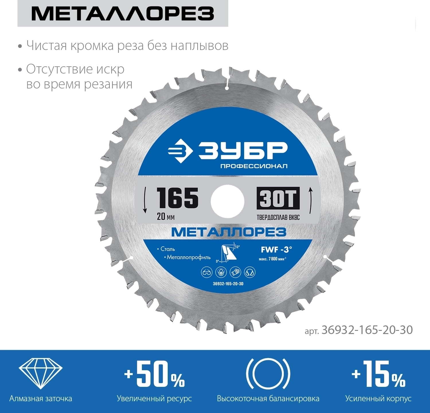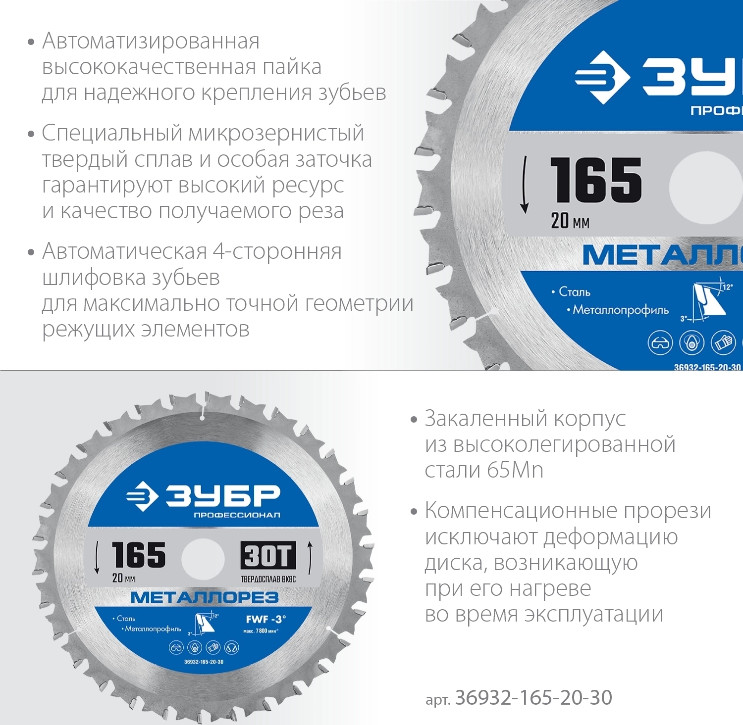 Пильный диск по металлу и металлопрофилю ЗУБР Металлорез 165 х 20 мм 30Т