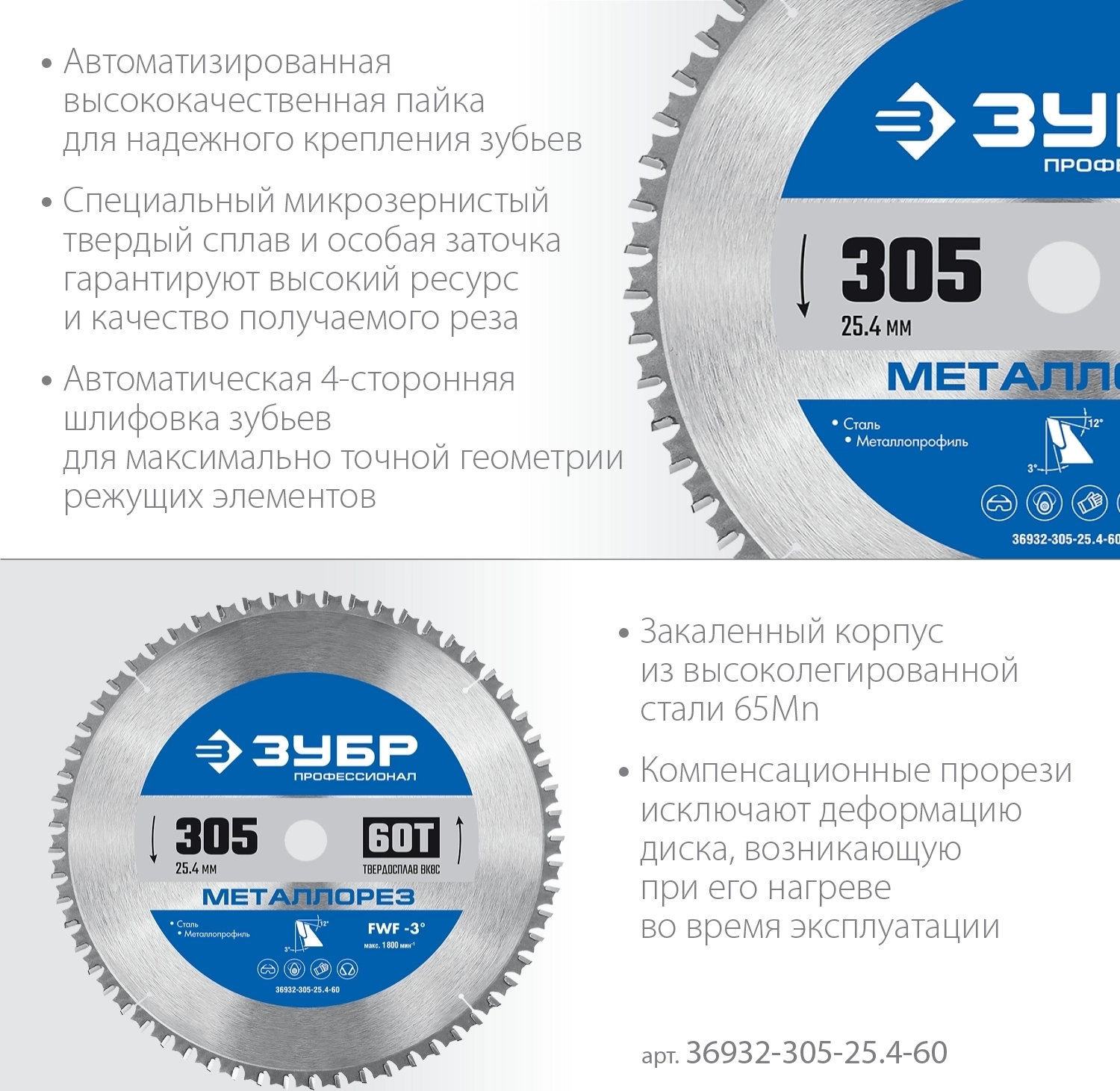 Пильный диск по металлу и металлопрофилю ЗУБР Металлорез 305 х 25.4 мм 60Т