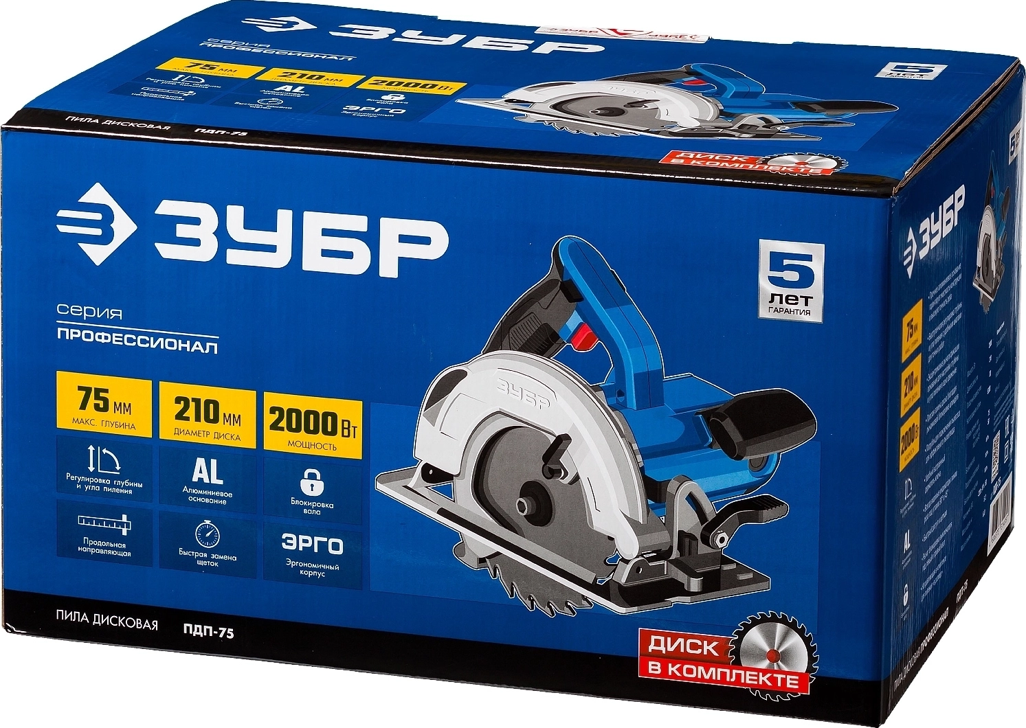 ЗУБР ПДП-75 Циркулярная пила d 210 мм 2000 Вт дисковая арт. 100594