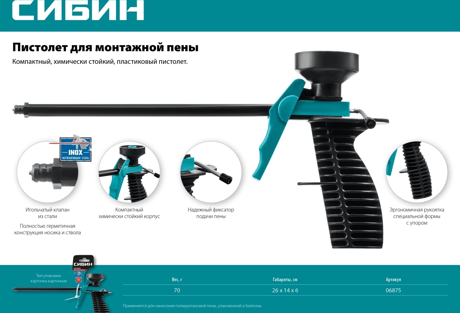 Применяется для нанесения полиуретановой пены, упакованной в баллоны.
