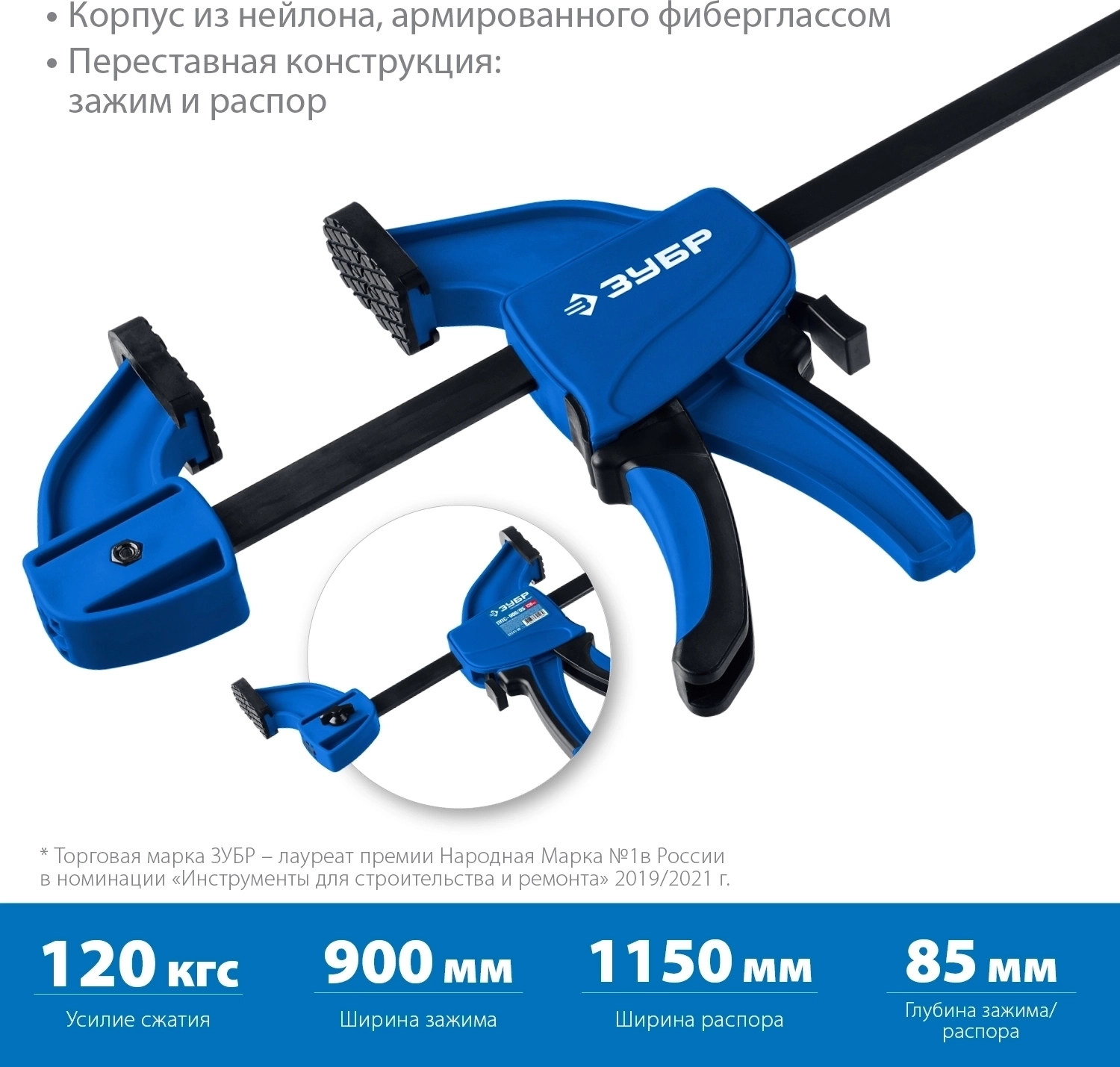 Пистолетная струбцина ЗУБР ППС-900/85 900 х 85 мм