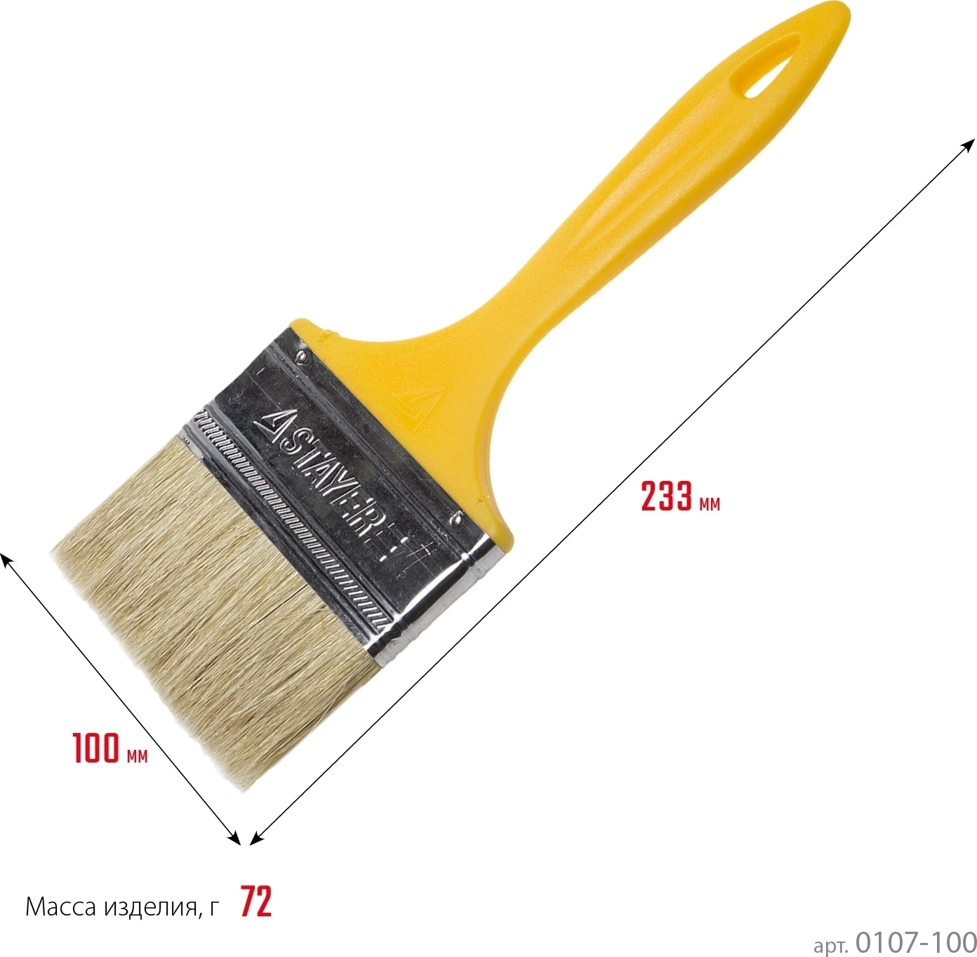 Пластмассовая ручка STAYER UNIVERSAL 100 мм 4″ светлая натуральная щетина плоская кисть 0107-100 - 12 шт