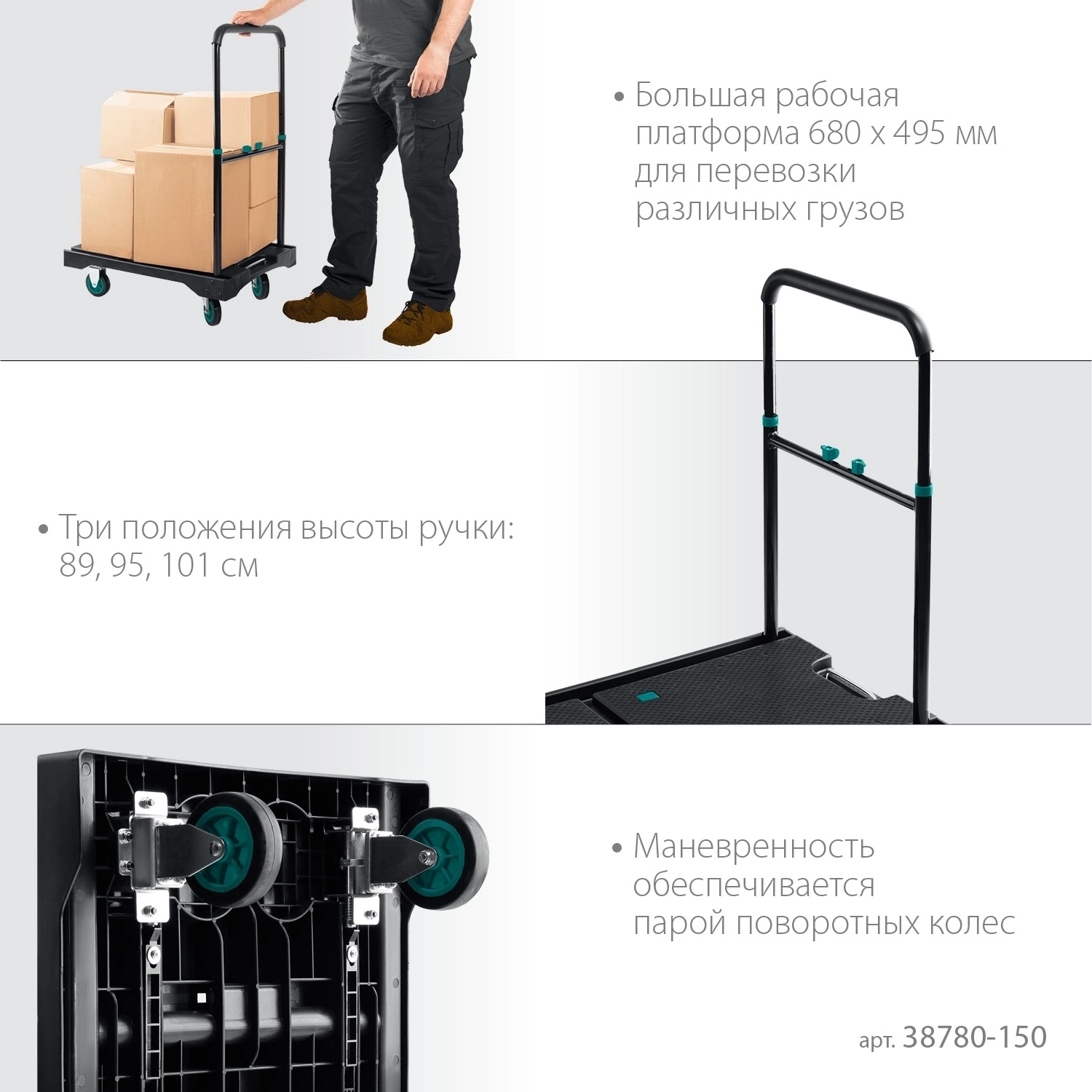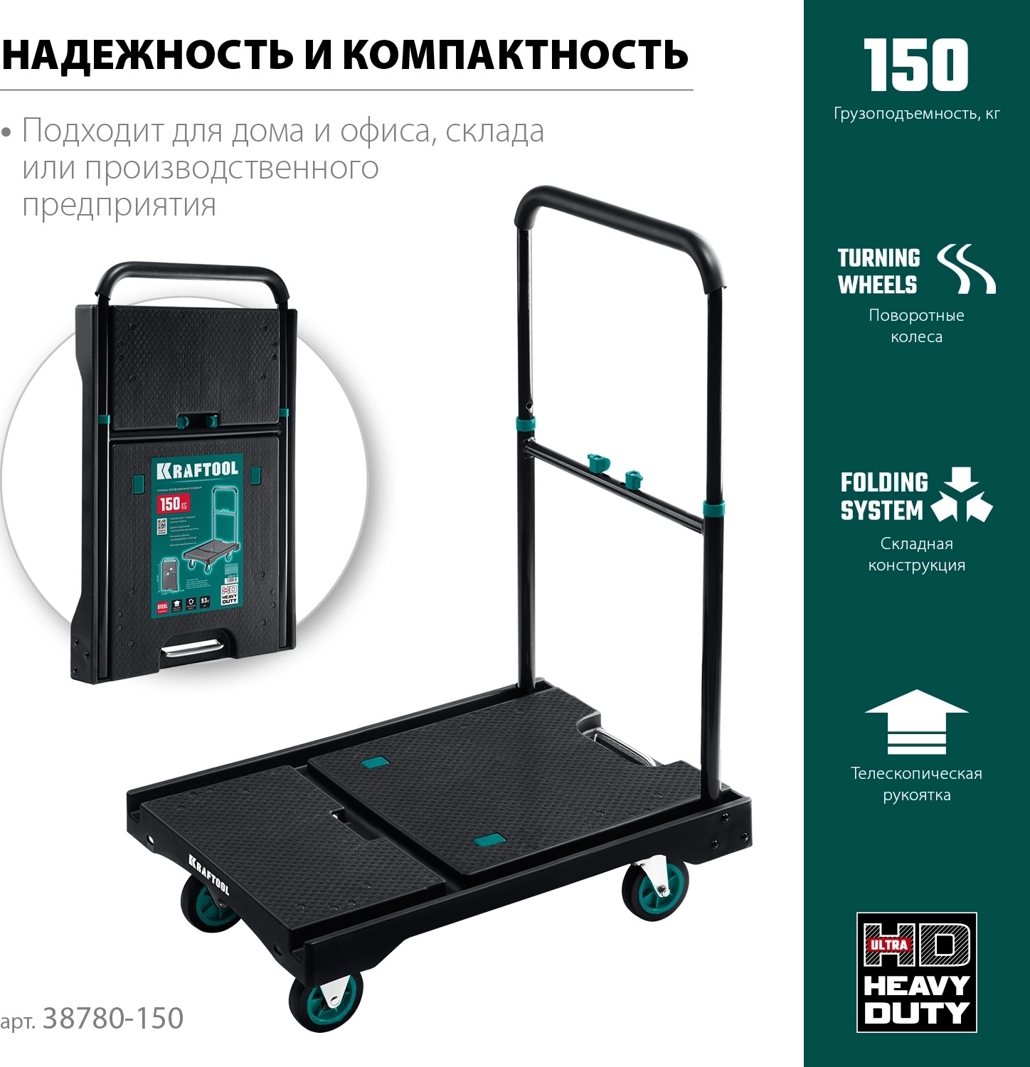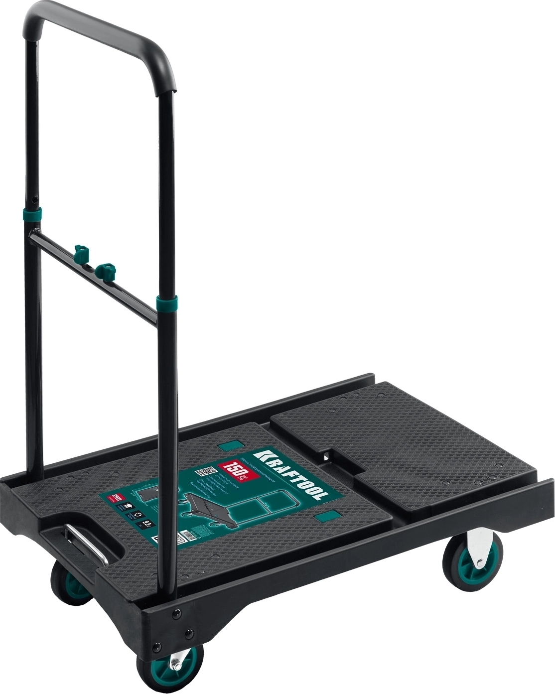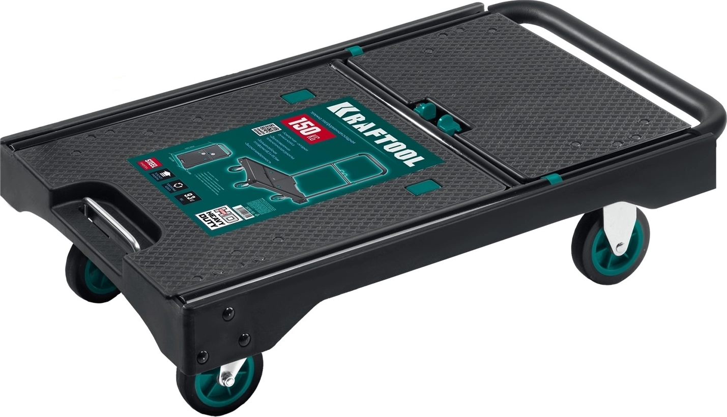 Платформенная тележка KRAFTOOL до 150 кг, платформа 68.0 х 49.5 см, складная рукоятка, складные колеса d 10 см, вес - 9.3 кг