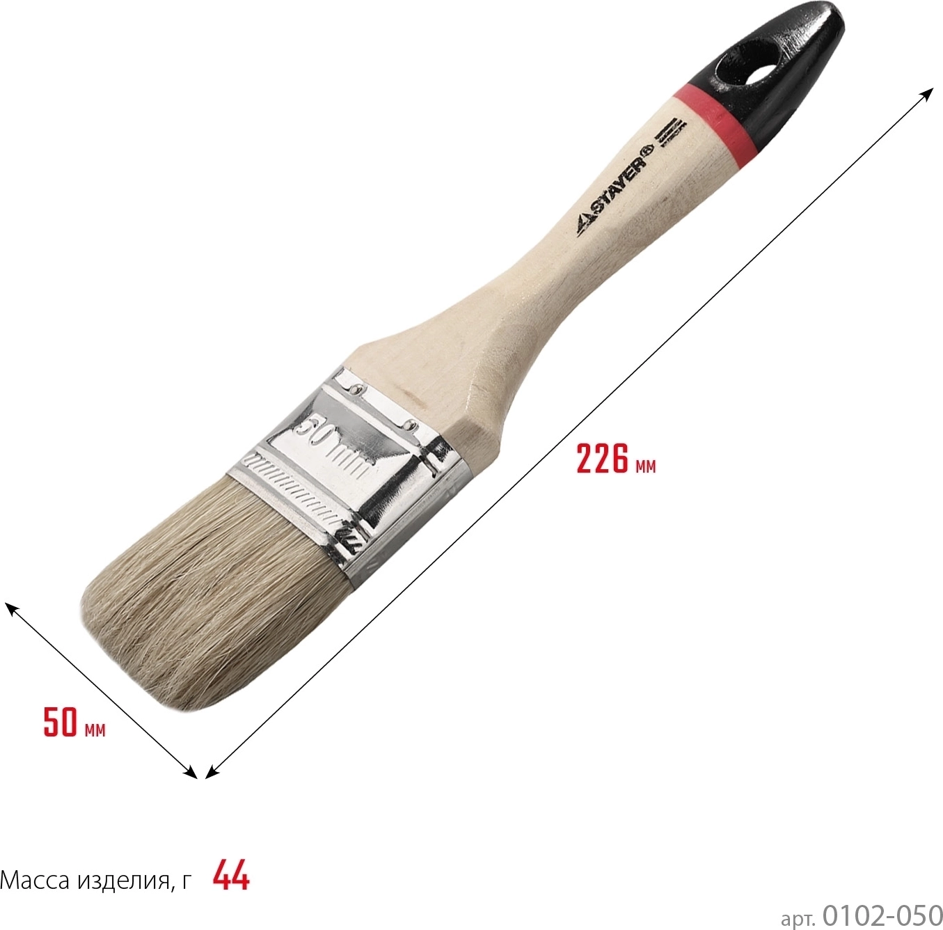 Плоская кисть STAYER UNIVERSAL - EURO 50 мм 2″ светлая натуральная щетина деревянная ручка все виды ЛКМ 0102-050 - 12 шт