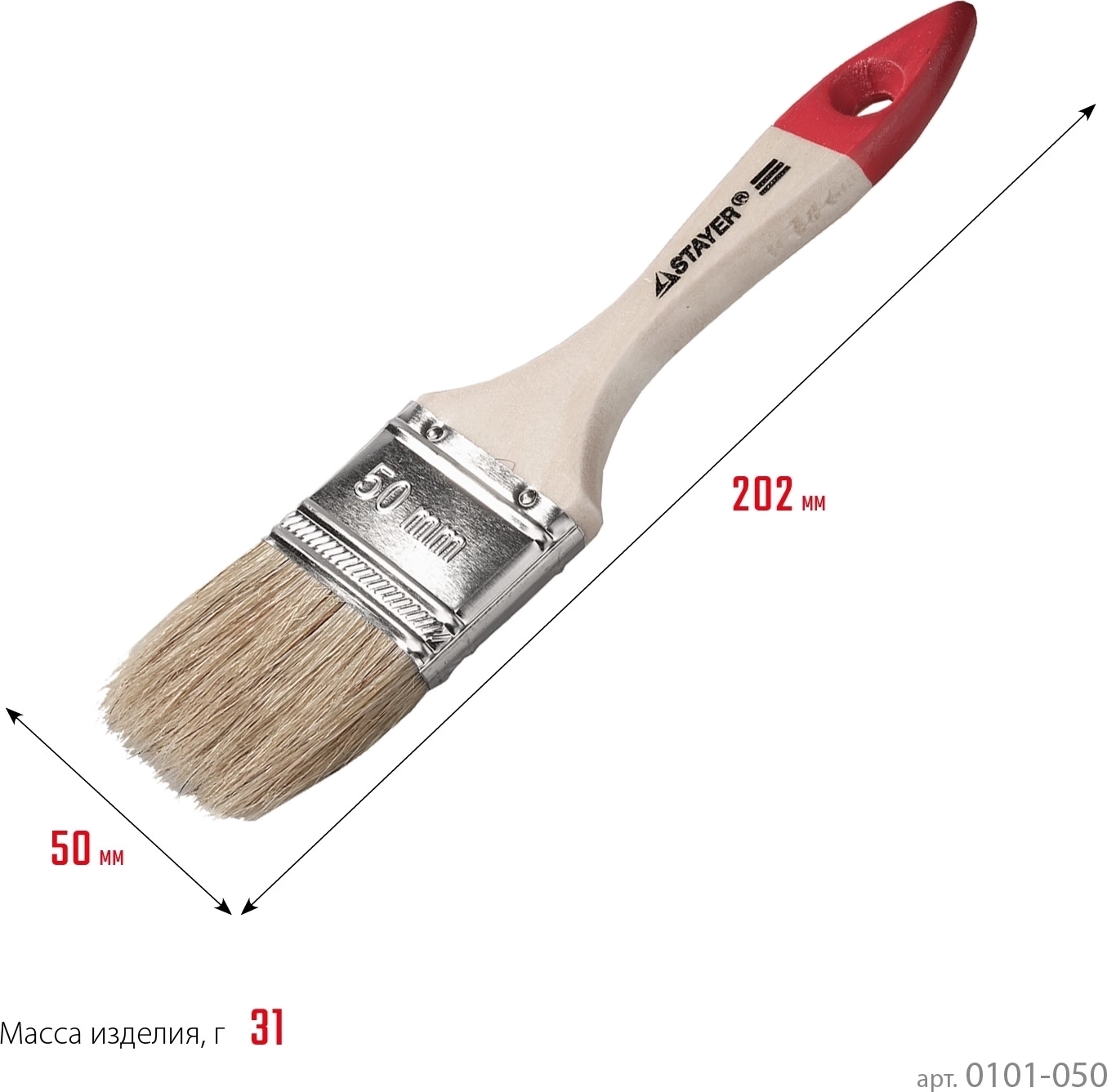 Плоская кисть STAYER UNIVERSAL 50 мм 2″ светлая натуральная щетина деревянная ручка все виды ЛКМ 0101-050 - 12 шт