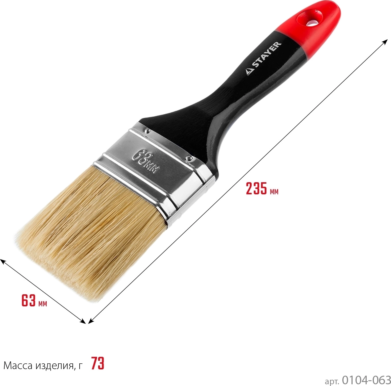 Плоская кисть STAYER Universal 63 мм 2.5″ светлая натуральная щетина деревянная ручка все виды ЛКМ Professional 0104-063 - 12 шт