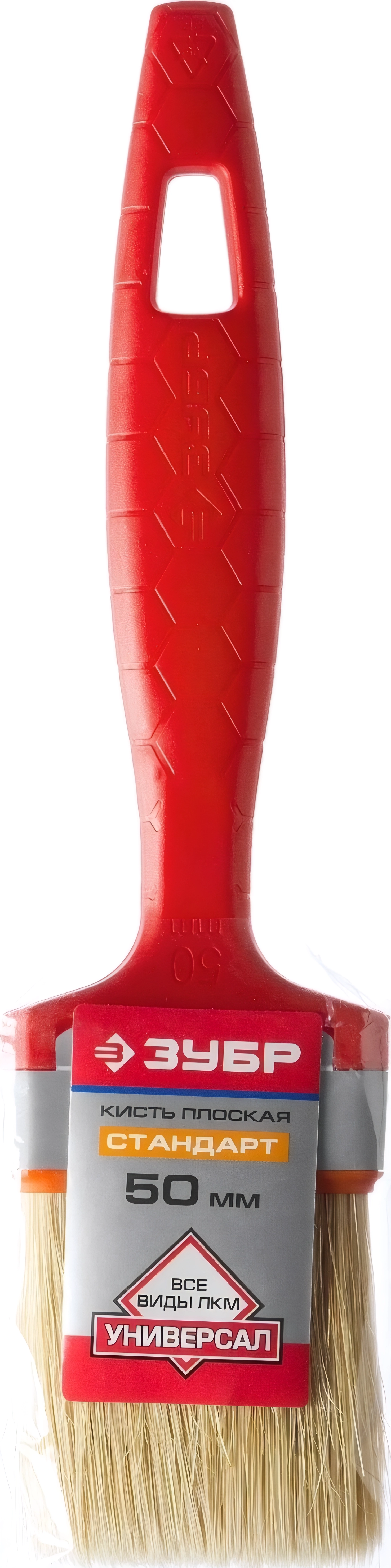 Плоская кисть ЗУБР УНИВЕРСАЛ 50 мм 2″ светлая натуральная щетина пластмассовая ручка все виды ЛКМ 01015-050 - 12 шт