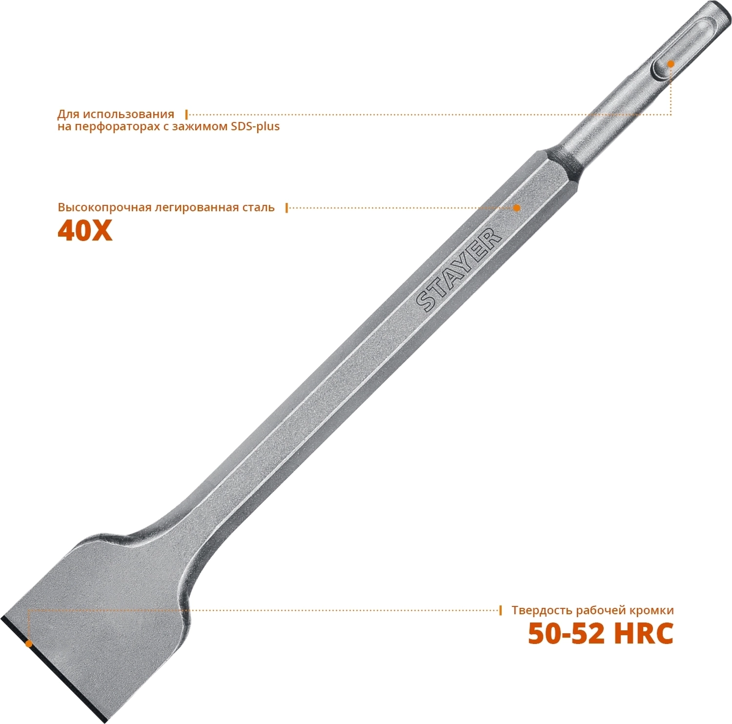 Зубила STAYER серии PROFESSIONAL - это высококачественный ударный инструмент, незаменимый на строительной площадке. Предназначено для общих долбежных и демонтажных работ с материалами высокой твердости, такими как кирпичная кладка, бетон или камень.