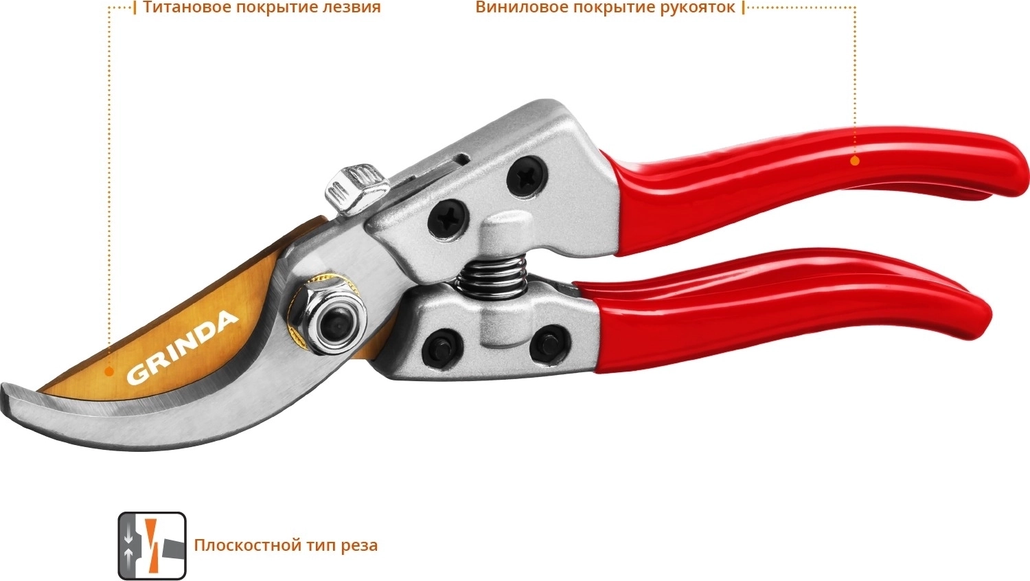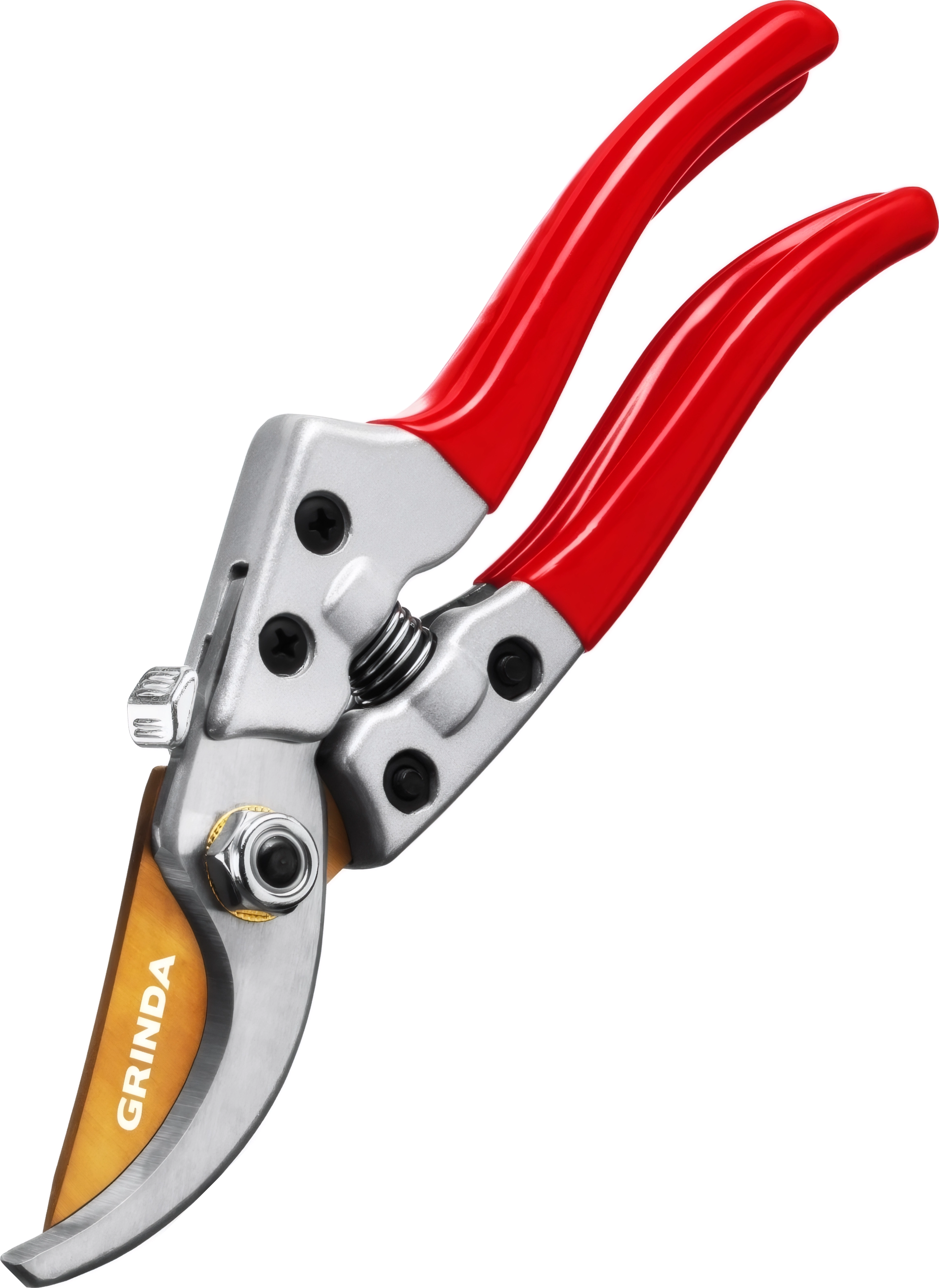 Плоскостной секатор GRINDA G-13, 205 мм, закаленные лезвия, титановое покрытие, алюминиевые рукоятки