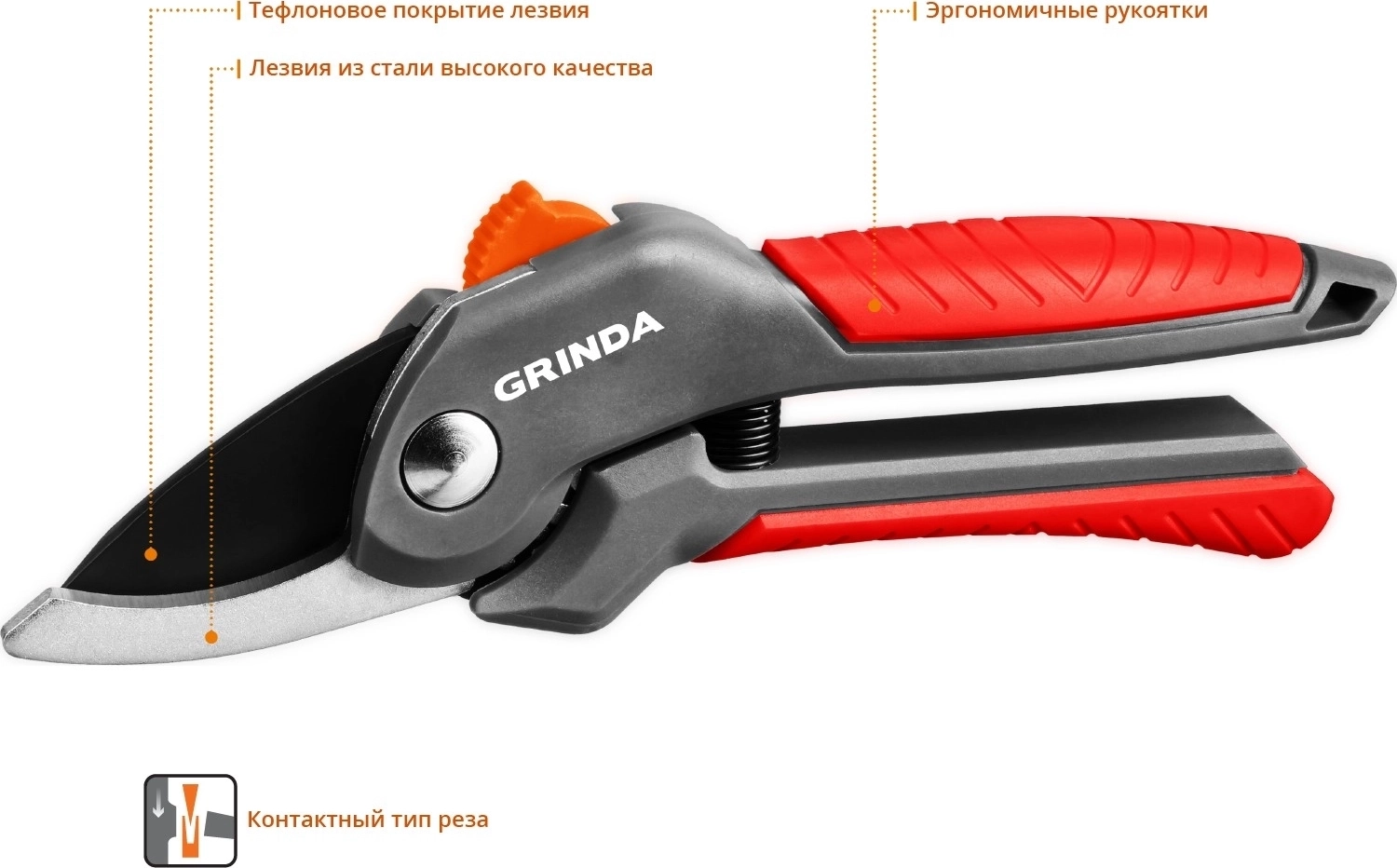 Все секаторы GRINDA являются прочными, долговечными и удобными изделиями, обеспечивая комфортный и лёгкий рез. Они выполнены из высококачественных материалов гарантирующих долгий срок эксплуатации.