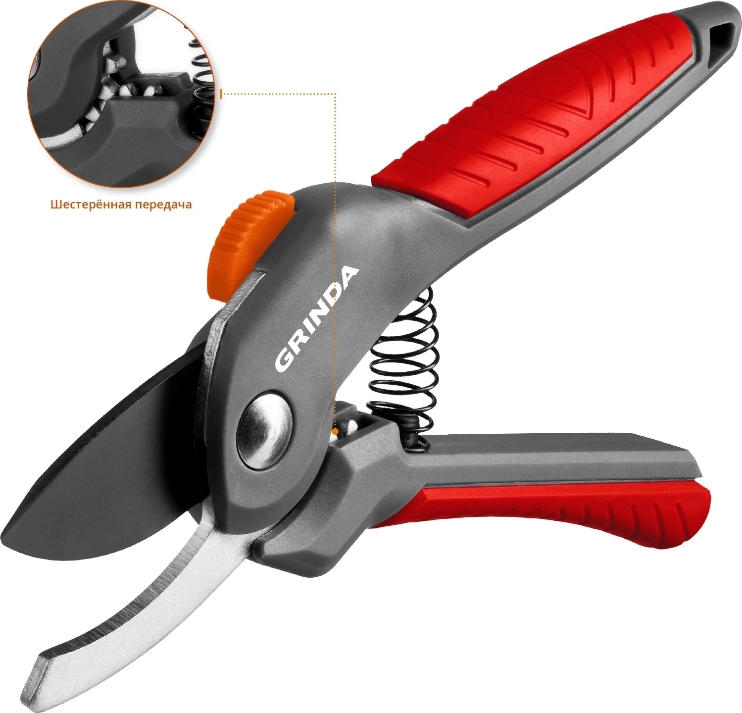 Плоскостной секатор GRINDA G-22, 200 мм, с двухкомпонентными рукоятками