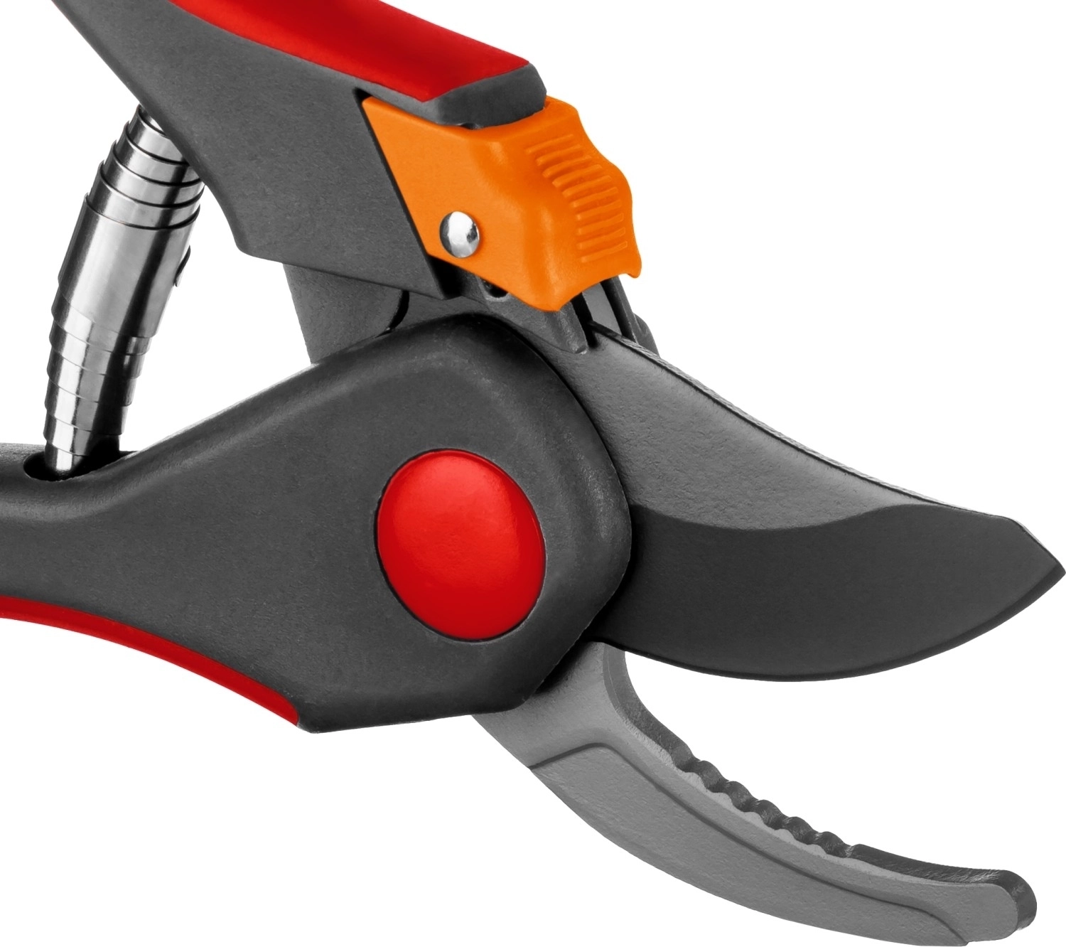 - Секатор снабжен верхним фиксатором и ремешком для ношения на руке.