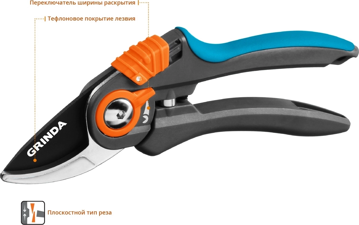 Плоскостной секатор PROLine GRINDA P-59 210 мм тефлоновое покрытие с двухкомпонентными рукоятками