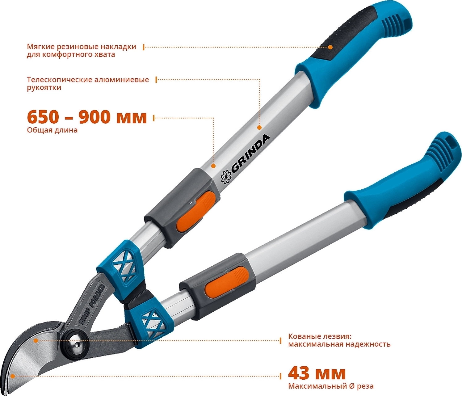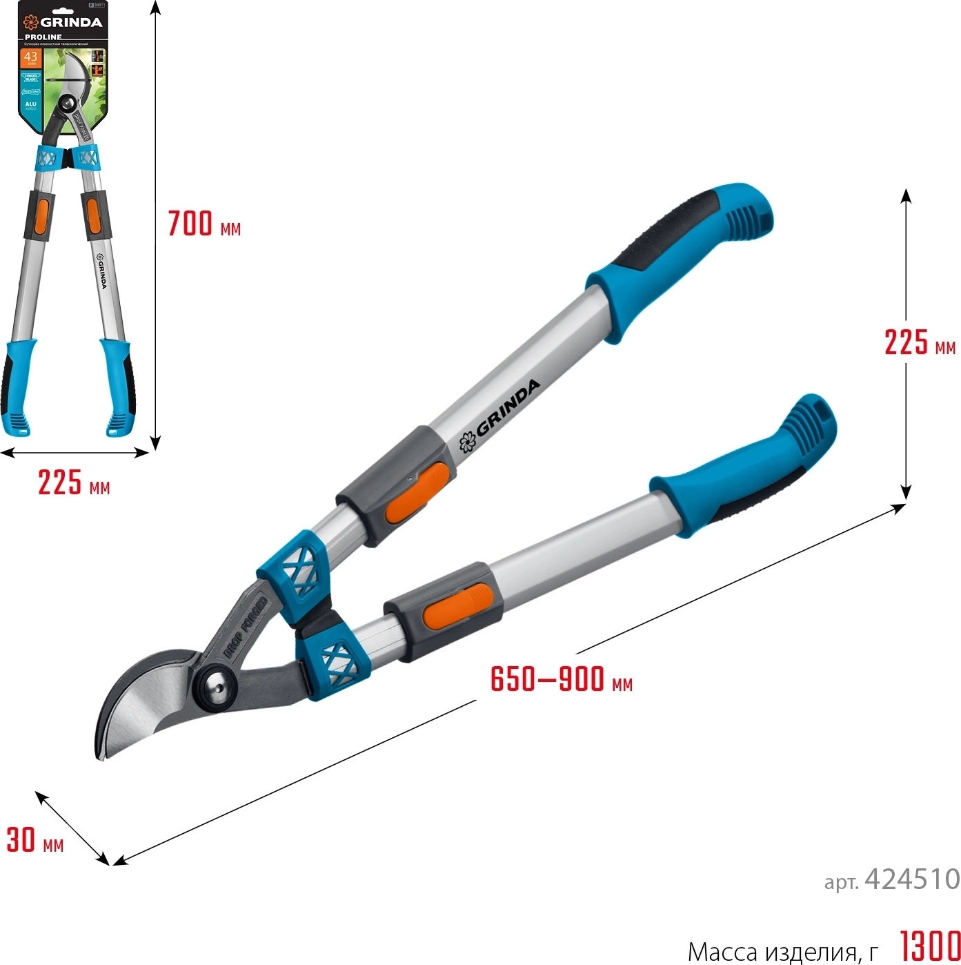 Плоскостной сучкорез PROLine GRINDA F-900T 650 - 900 мм кованые лезвия алюминиевые ручки телескопический