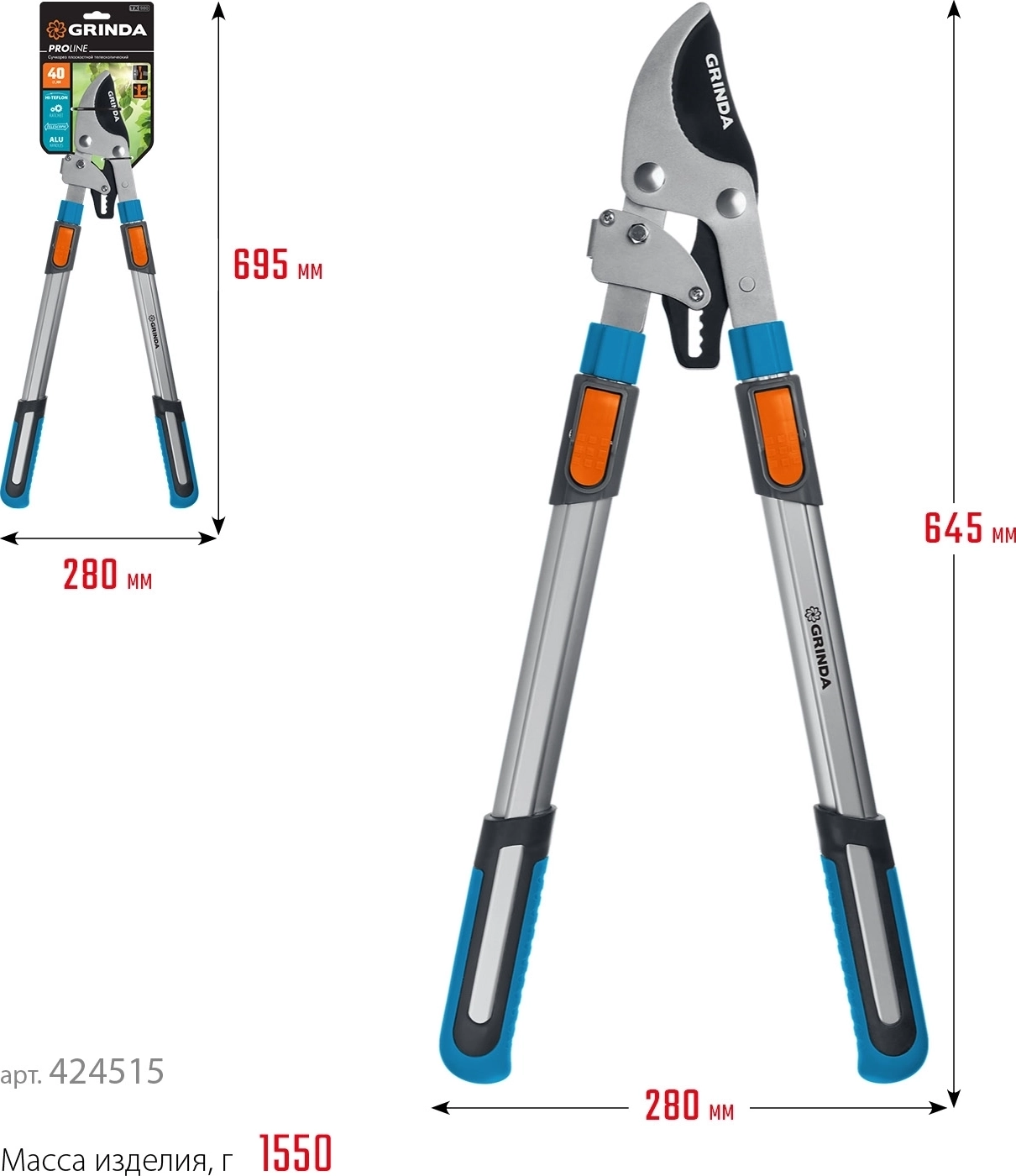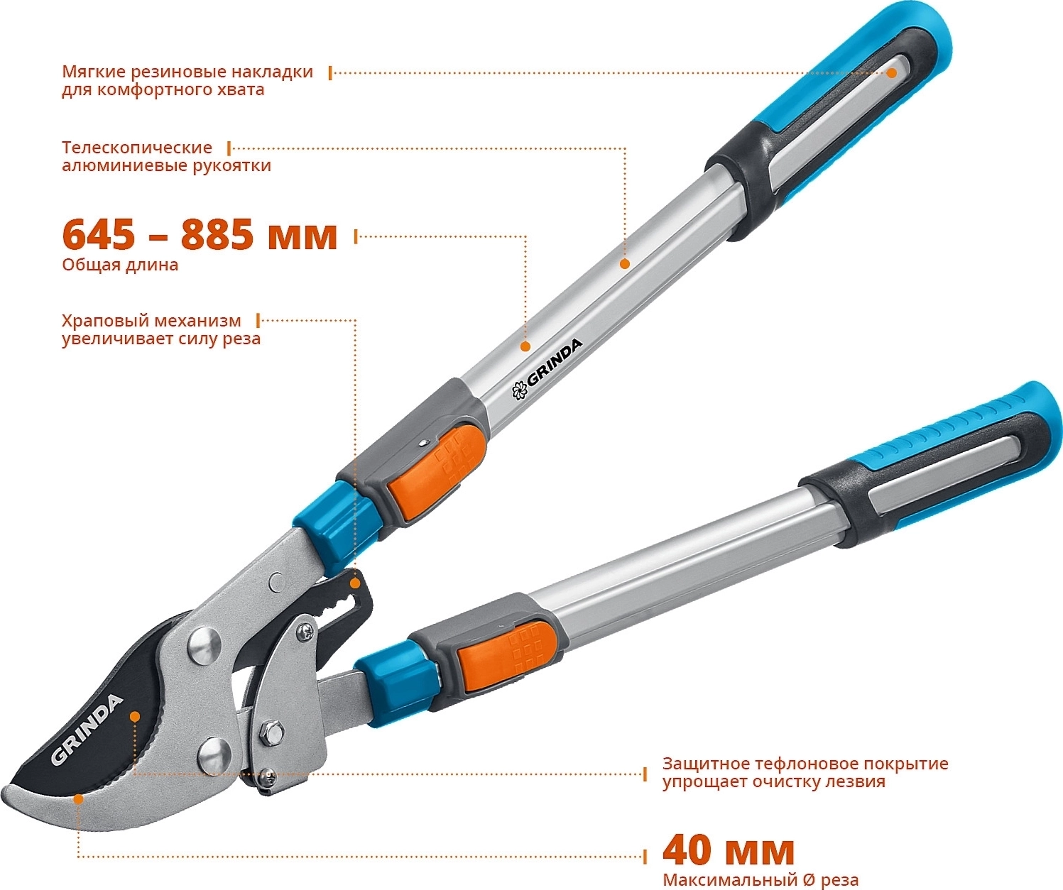 Плоскостной сучкорез PROLine GRINDA TX-980 645 - 885 мм высокоуглеродистая сталь закаленные лезвия храповый механизм телескопический