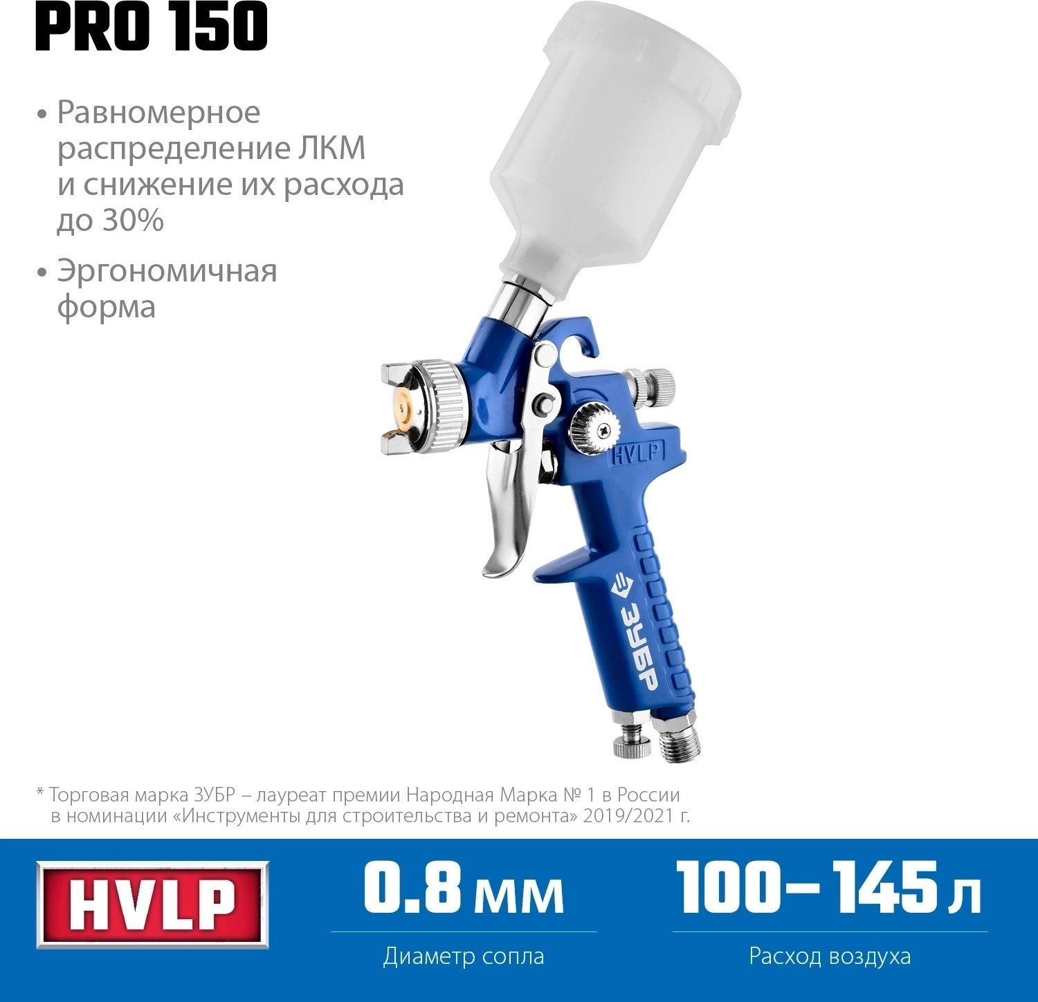 Пневматический краскопульт ЗУБР PRO 150 0.8 мм с верхним бачком