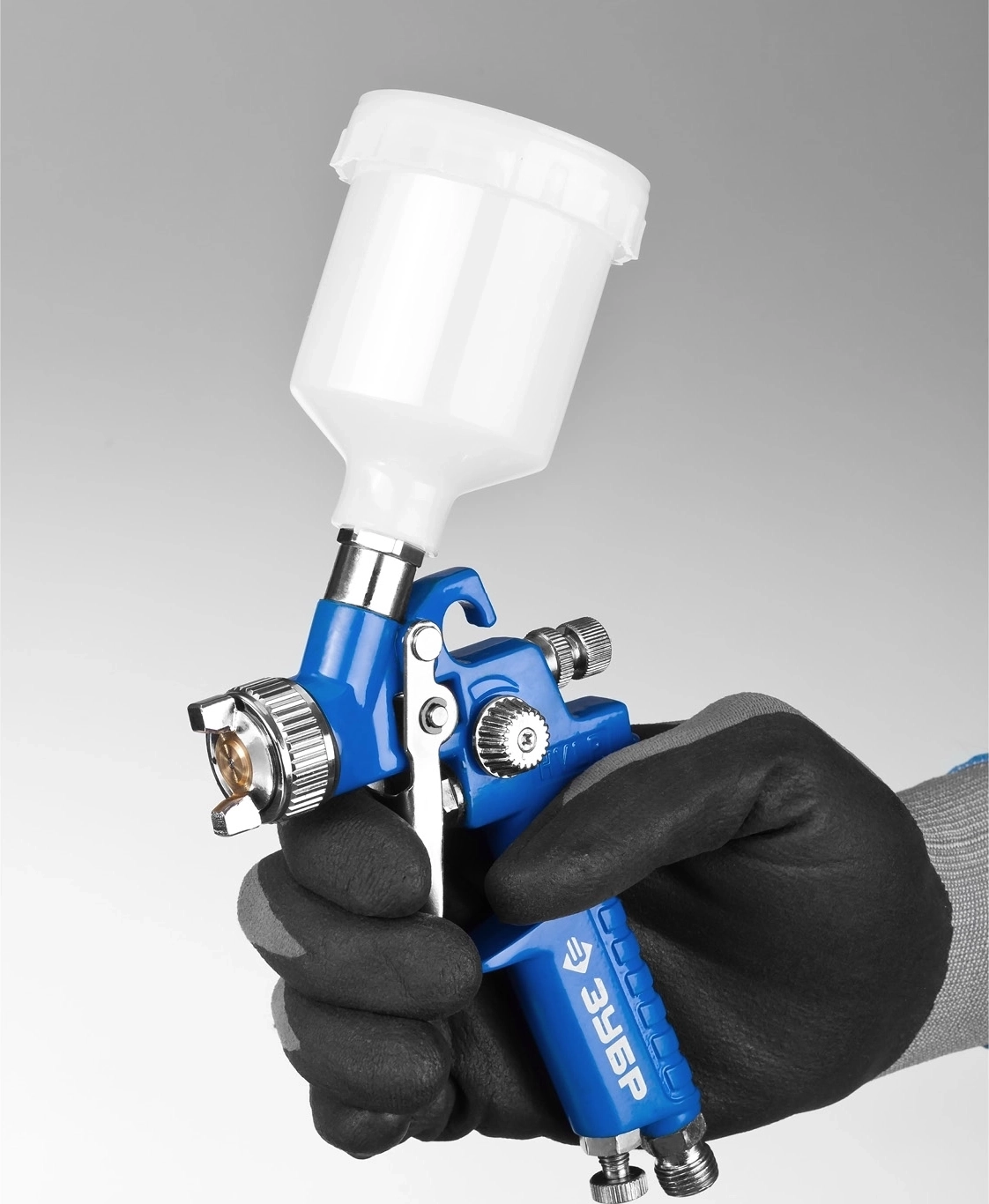 Профессиональный пневматический краскопульт ЗУБР ″ПРО 150 Мини″ - надежный инструмент для окрасочных работ в мастерских на специализированных предприятиях, отличающийся точностью и долгим сроком службы