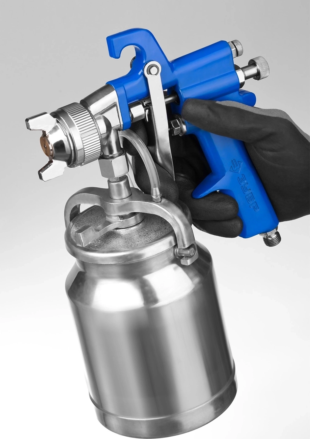 Профессиональный пневматический краскопульт ЗУБР ″ПРО Н350″ - надежный инструмент для окрасочных работ в мастерских на специализированных предприятиях, отличающийся точностью и долгим сроком службы