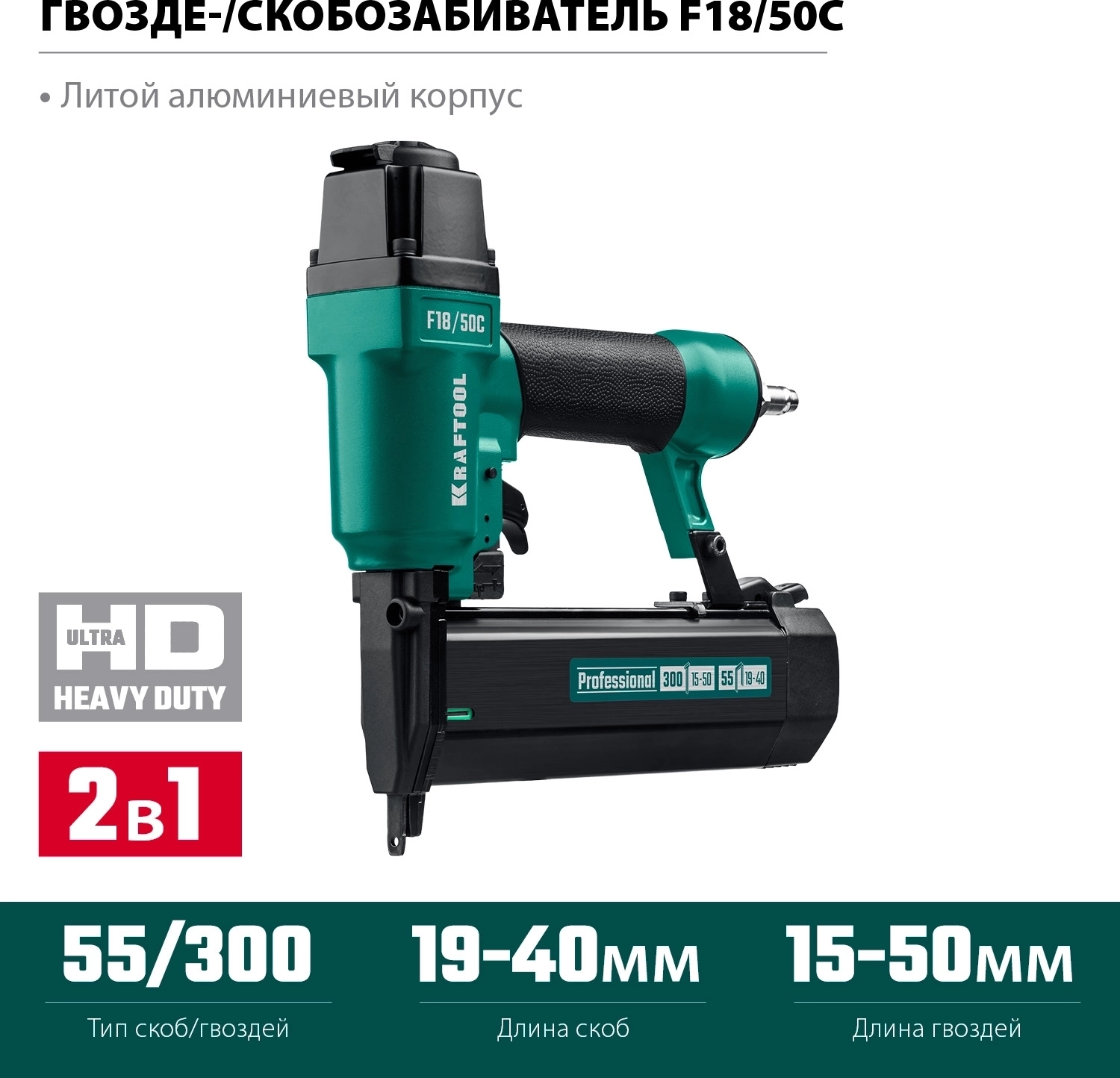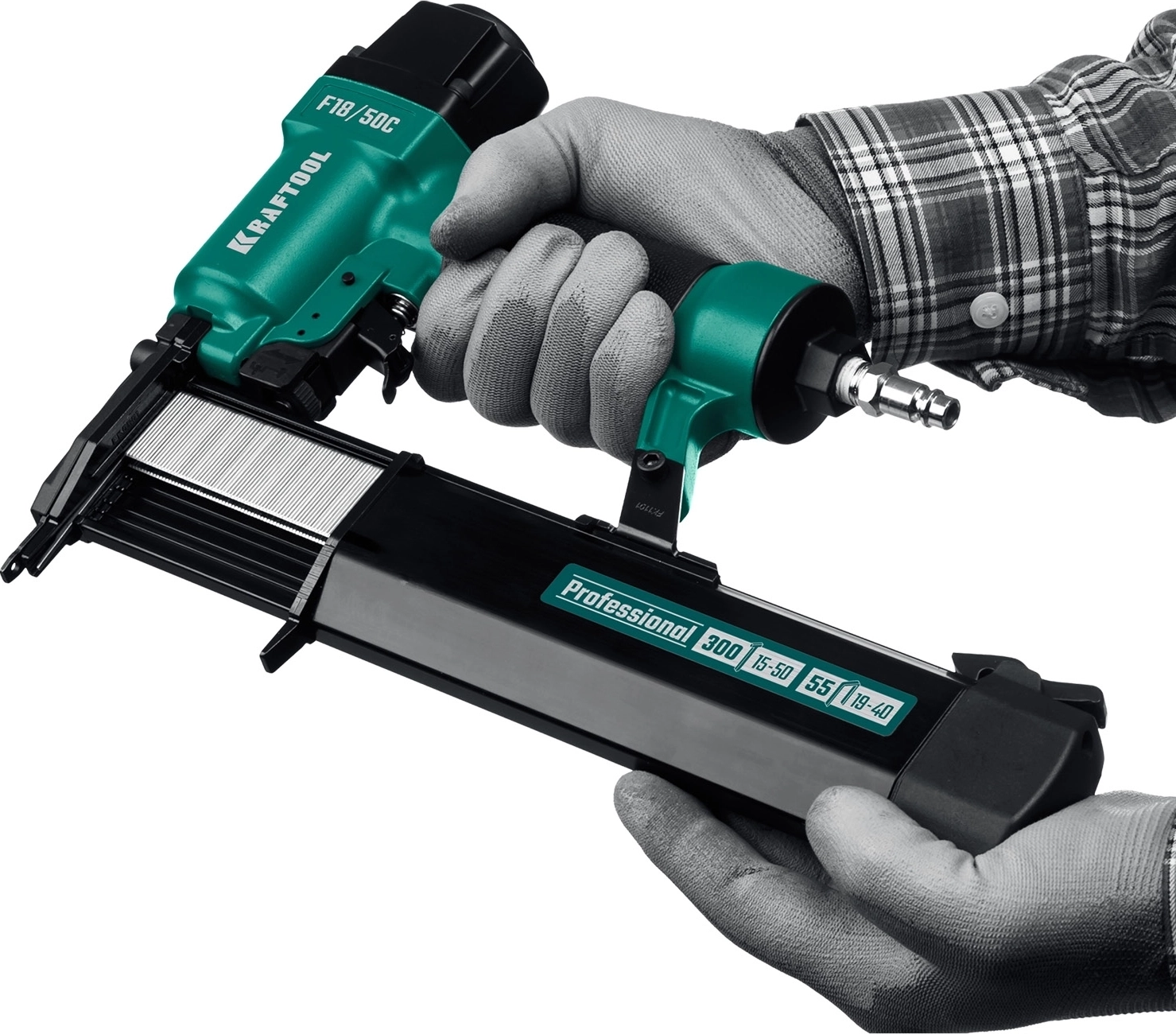 Пневматический нейлер-степлер KRAFTOOL F18/50C, 18Ga, скоба тип 55 и гвоздей тип 300