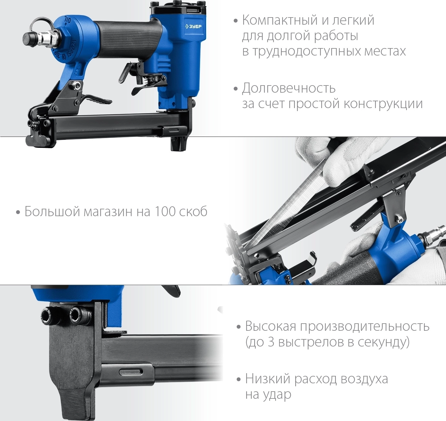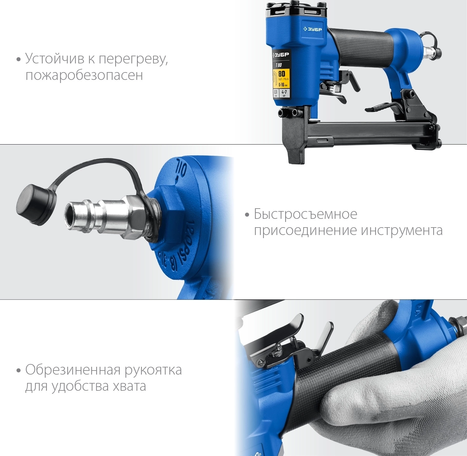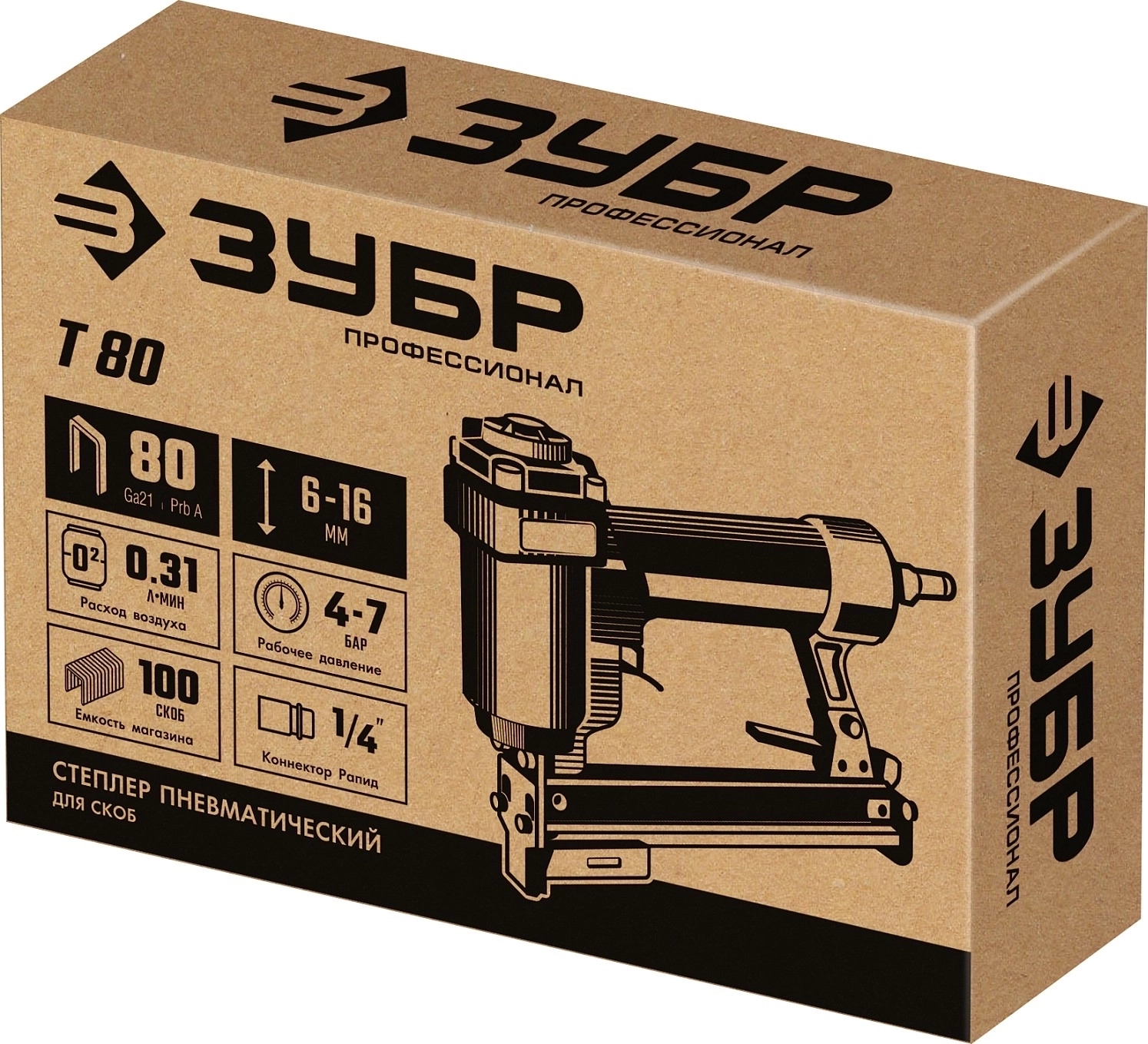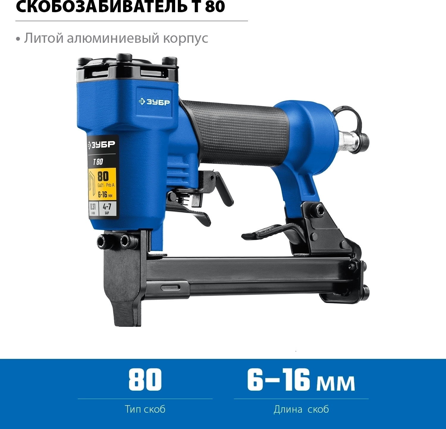 Пневматический степлер ЗУБР Т80 для скоб 21Ga тип 80 6-16 мм