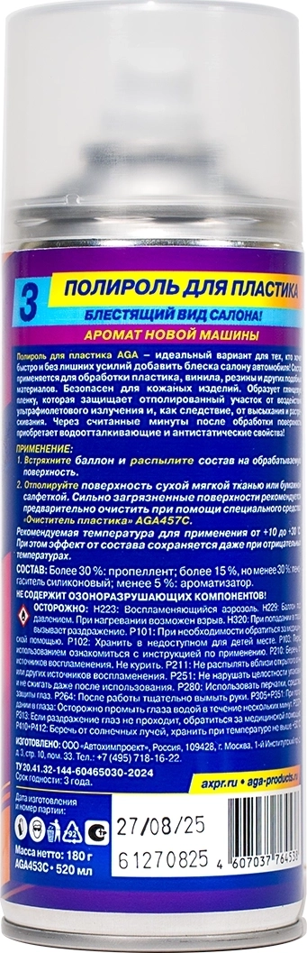 Полироль для пластика, глянцевый AGA С3, 520мл (AGA453C)