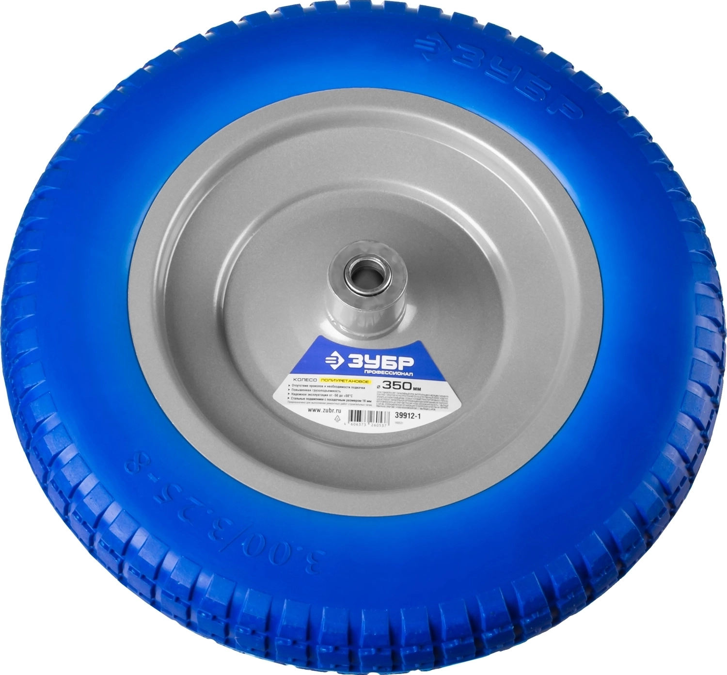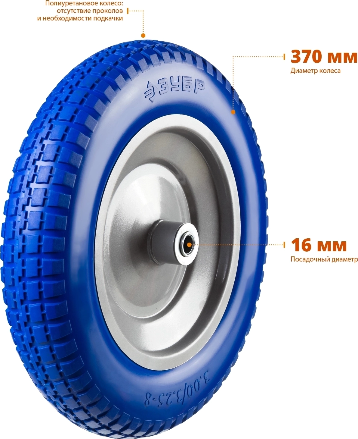 Полиуретановое колесо для тачек ЗУБР КПУ-1 3.25" x 350 мм, стальной диск, подшипник 16 мм