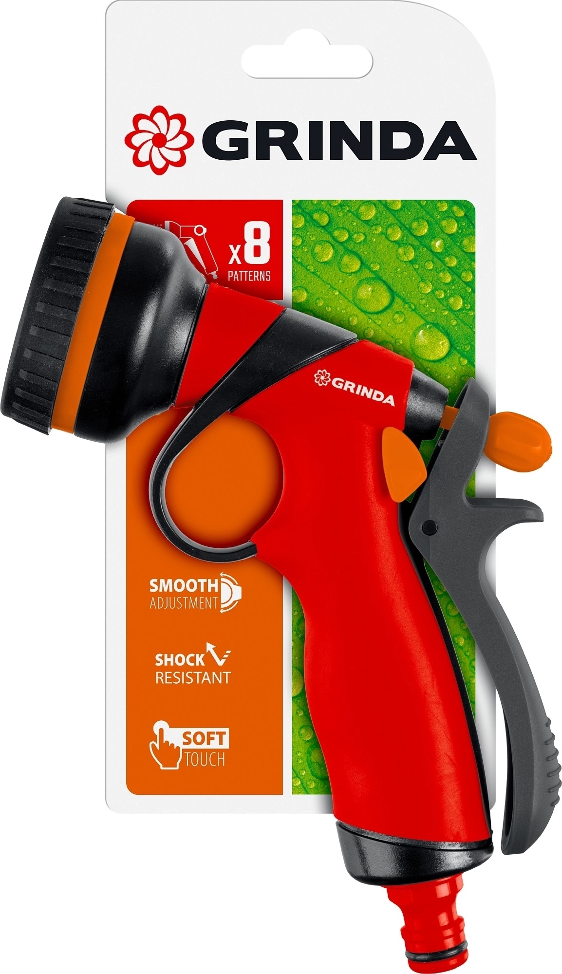 Поливочный пистолет GRINDA T-8C, 8 режимов, курок сзади, пластиковый с TPR