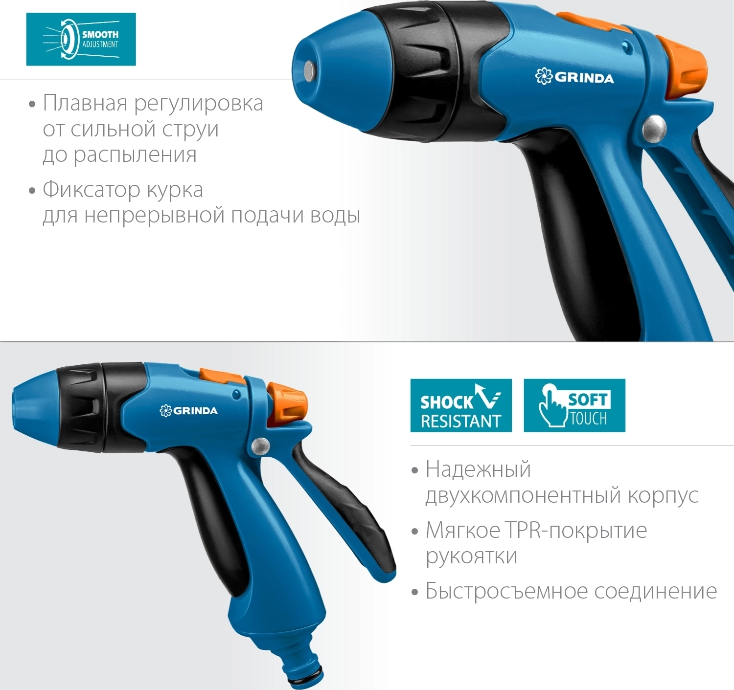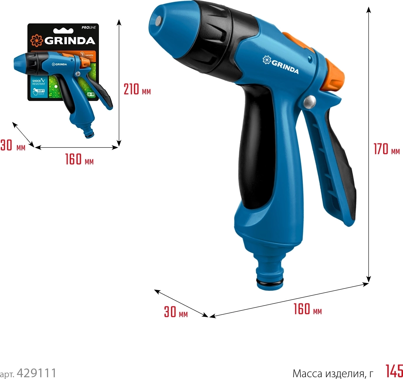 Поливочный пистолет PROLine GRINDA B-R плавная регулировка напора курок сзади двухкомпонентный