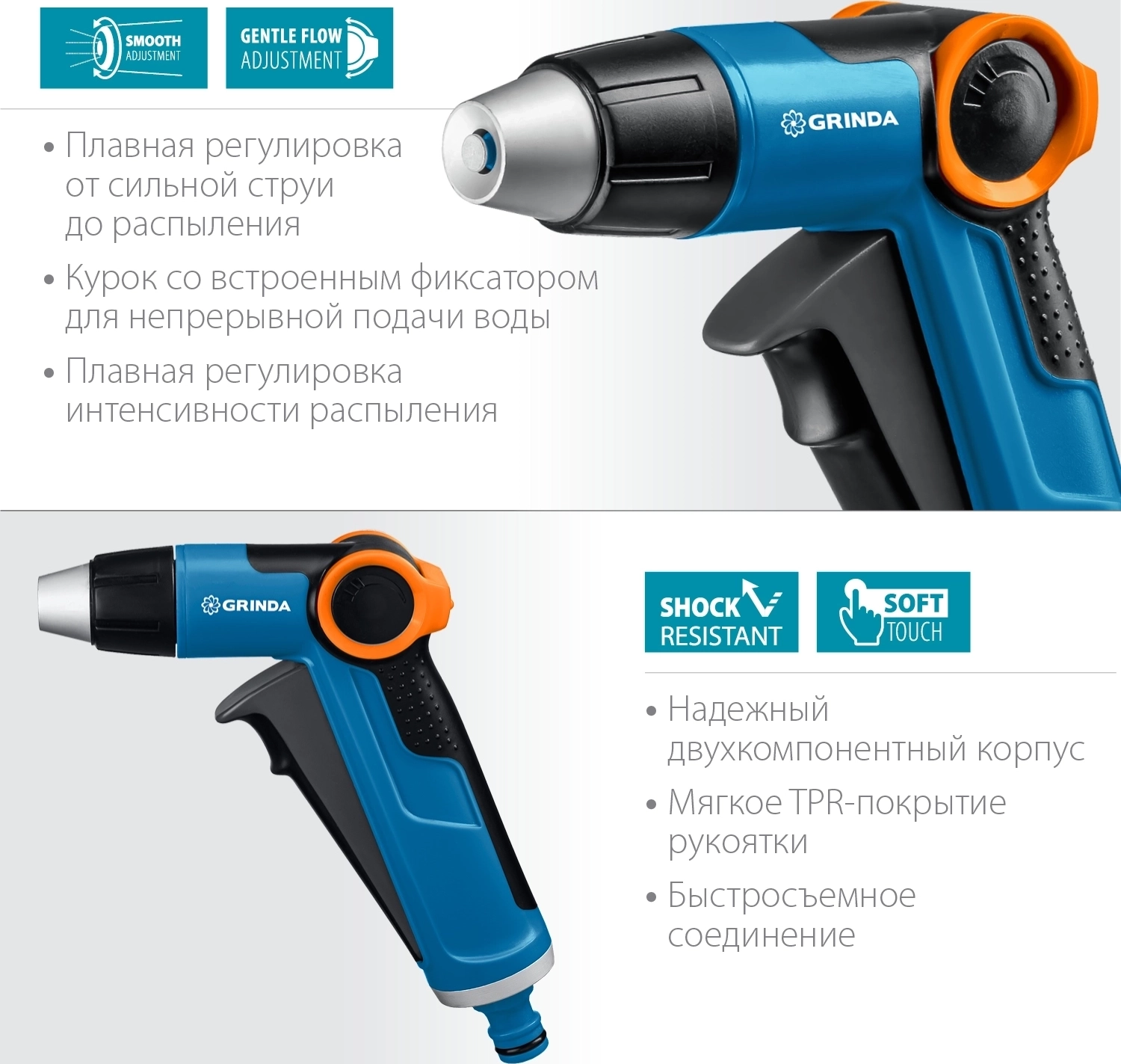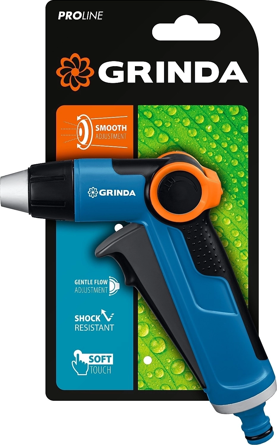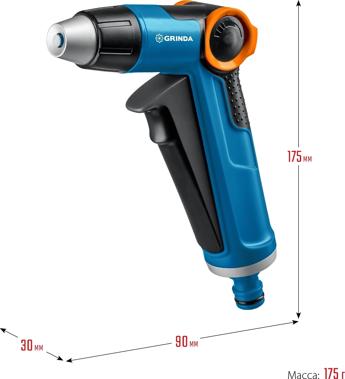 Поливочный пистолет PROLine GRINDA X-R с регулятором напора плавная регулировка курок спереди двухкомпонентный