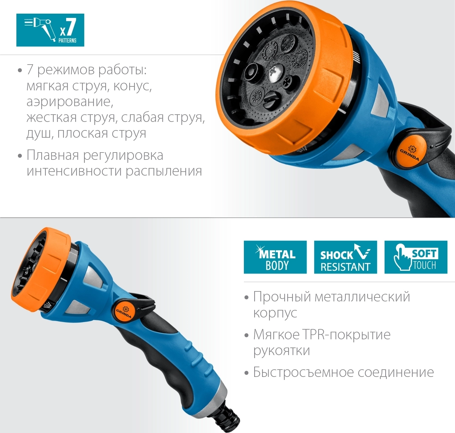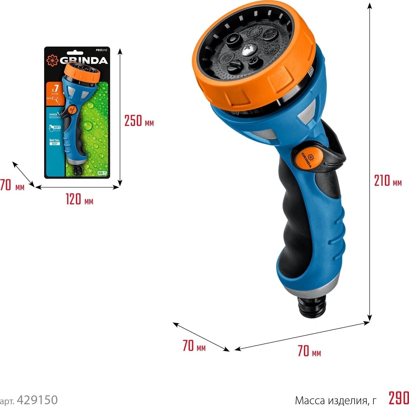Поливочный пистолет PROLine GRINDA XM-7 7 режимов металлический с TPR
