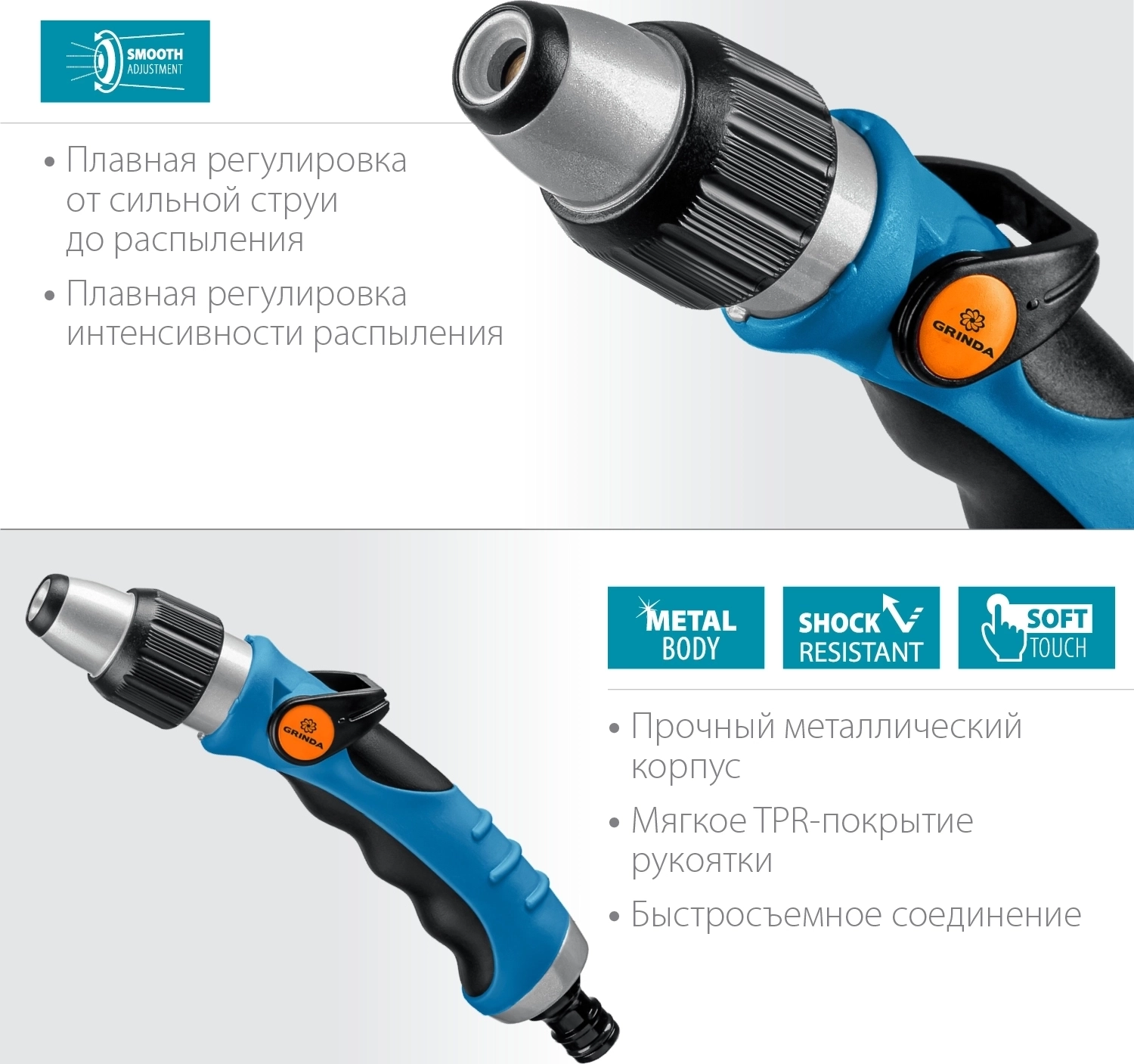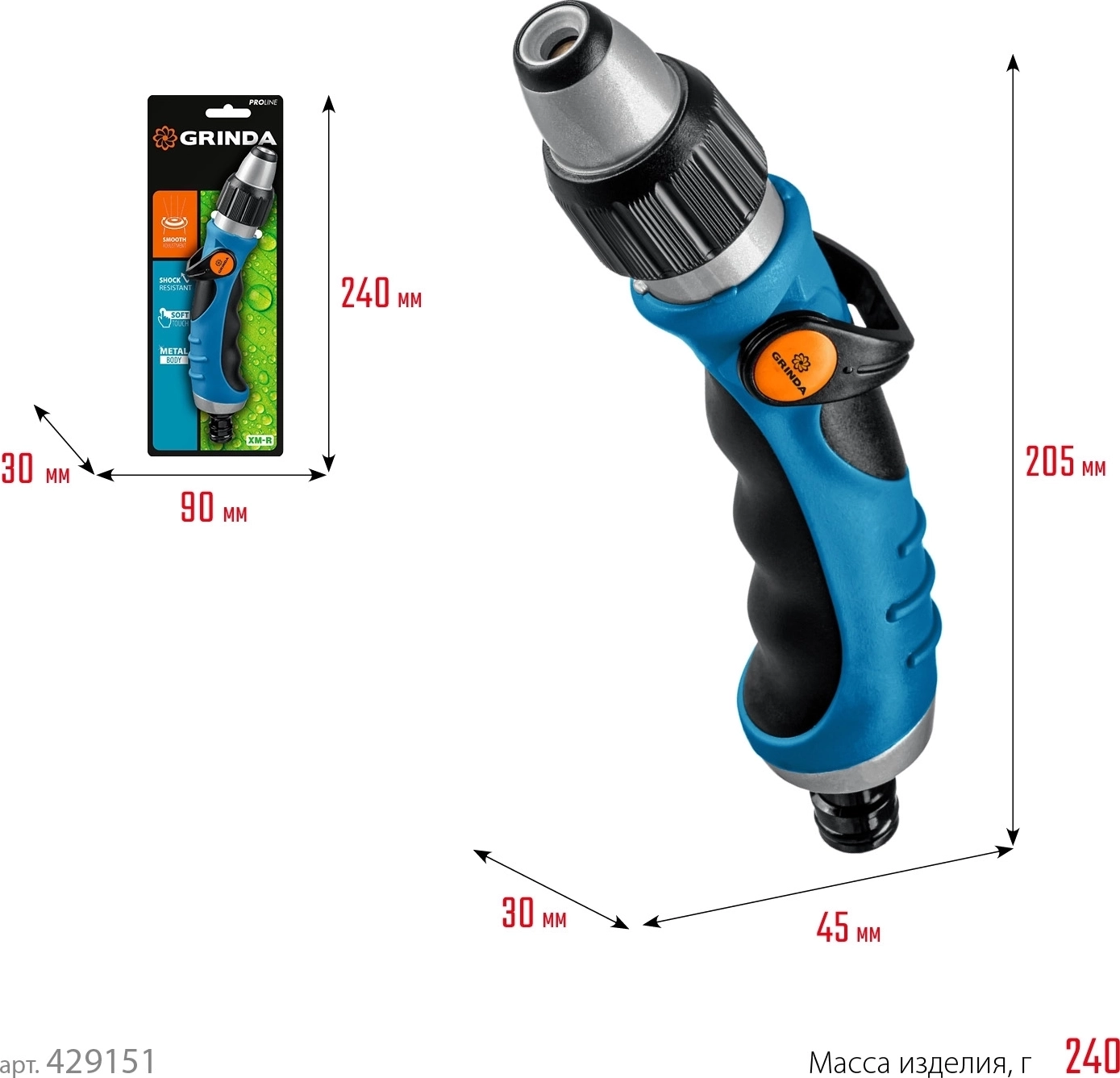 Поливочный пистолет PROLine GRINDA XM-R плавная регулировка напора металлический с TPR