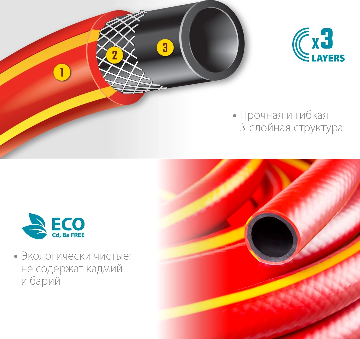 Поливочный шланг PROLine GRINDA EXPERT 3 3/4″ 25 м 30 атм трёхслойный армированный