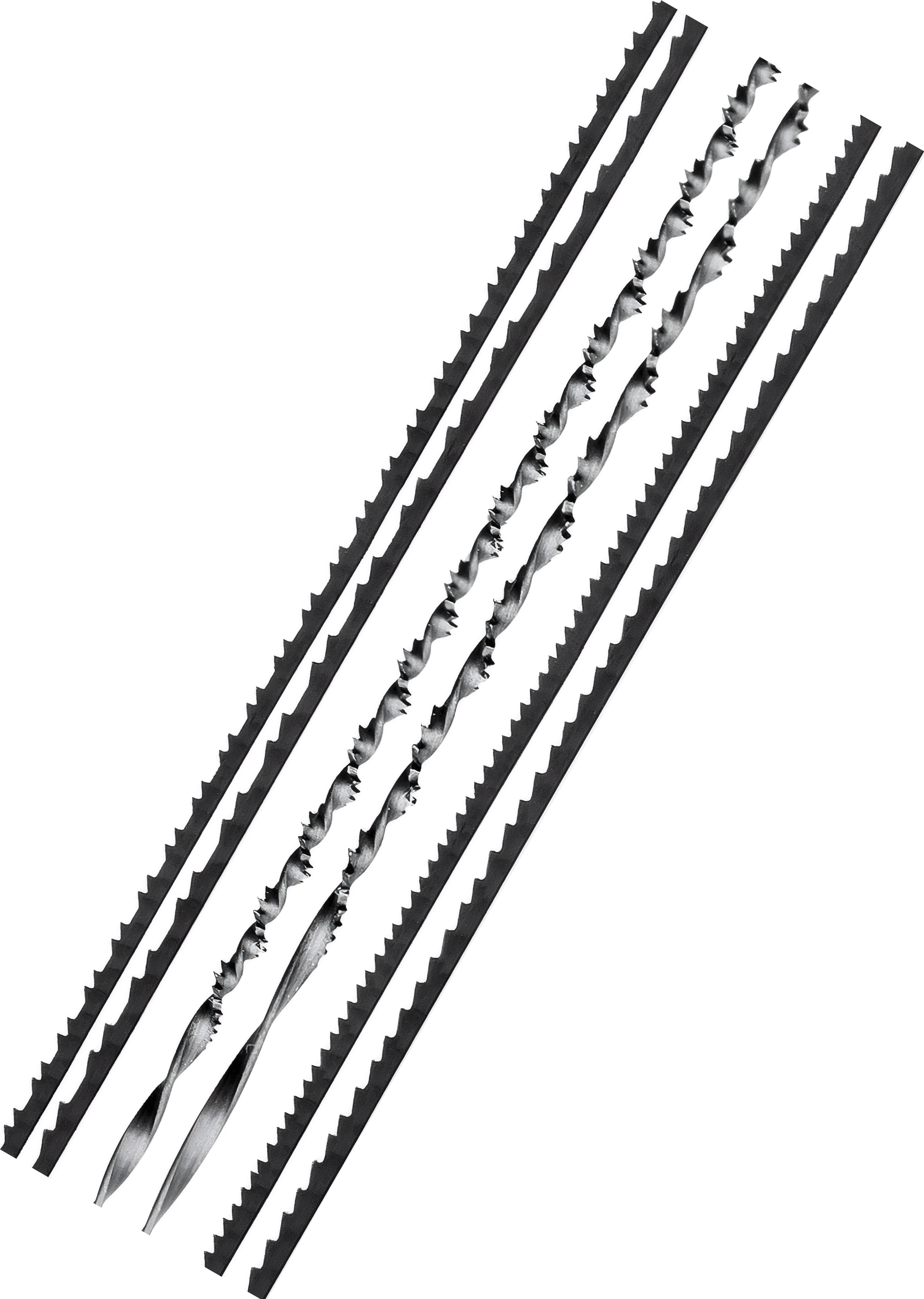 Применяются в качестве сменного инструмента в ручных лобзиках для выполнения точных работ по распили-ванию дерева, фанеры и пластмассы. Внимание: будьте осторожны – полотна очень острые. При работе надевайте защитные очки.
