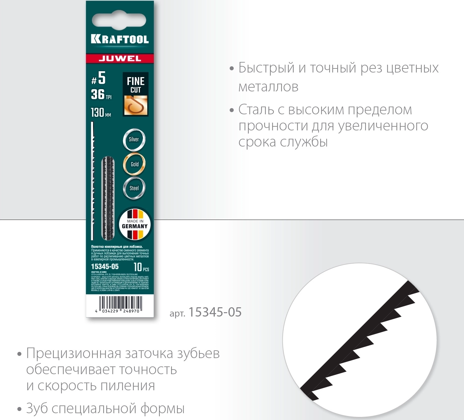 Полотна ювелирные для лобзика KRAFTOOL №5, 130 мм, 10 шт