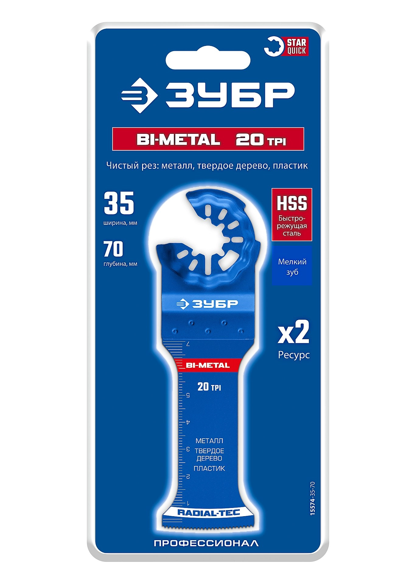 Полотно биметаллическое ЗУБР BIM 35x70 мм, 20TPI, чистый рез